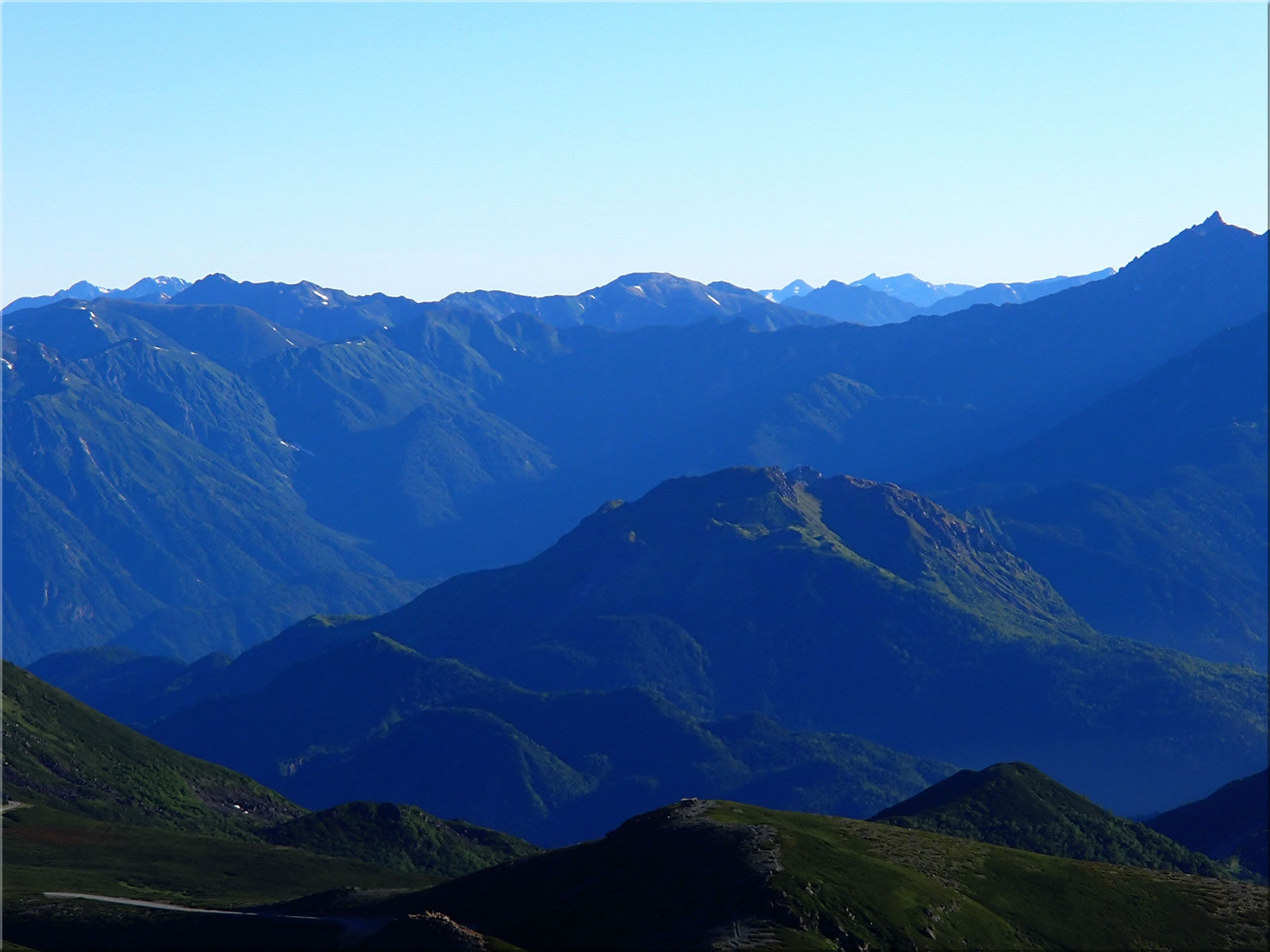 雲一つ無い空、そして遠くまで見通せるクリアな大展望が本当に素晴らしいです(^^)。では今日の展望を北アルプス方面から右回りでご紹介。
