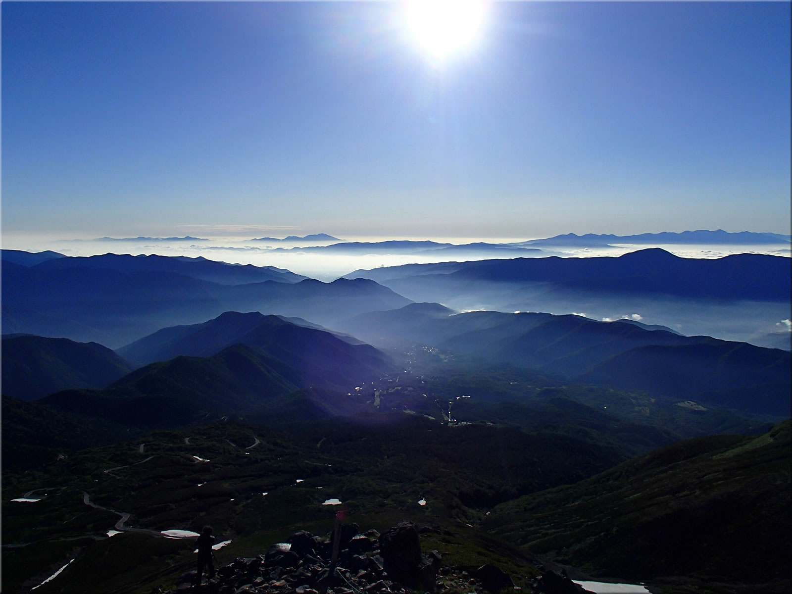 数分遅れた下りの始発のシャトルバスに乗って下っていきます。さすがにこの便で下る人は少なく、私を含め3人ほどしかいませんでした。