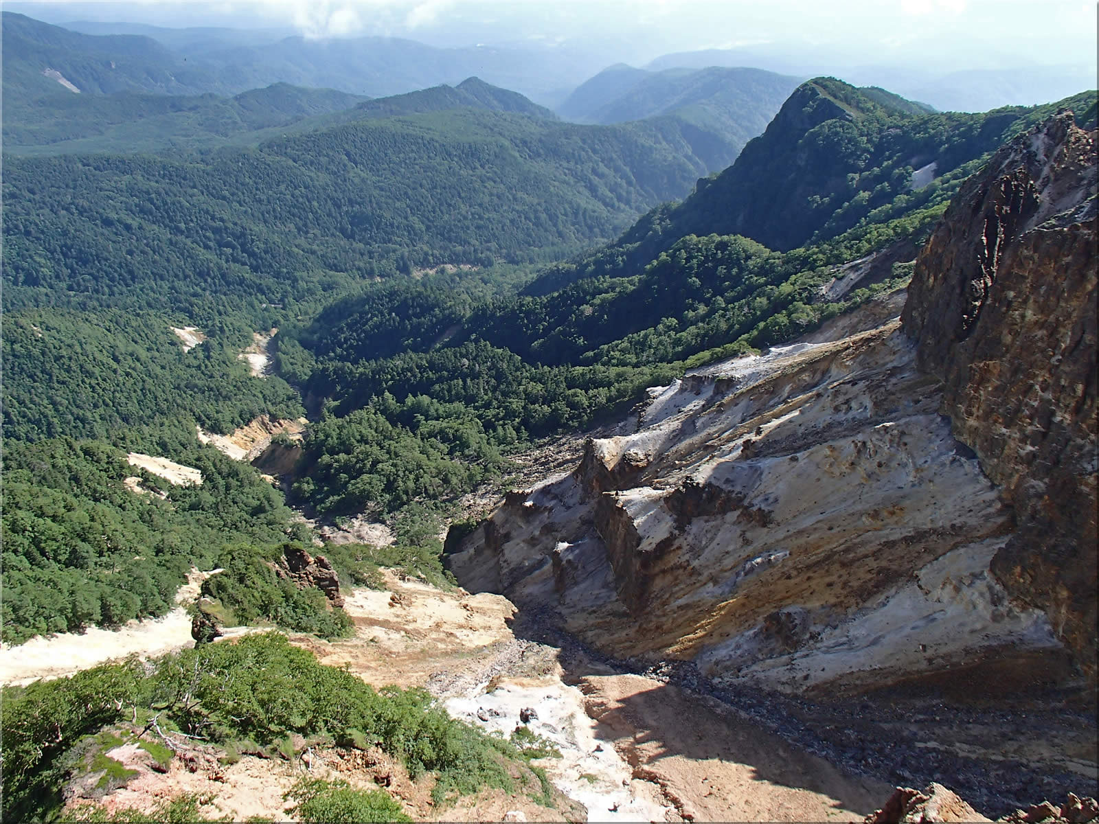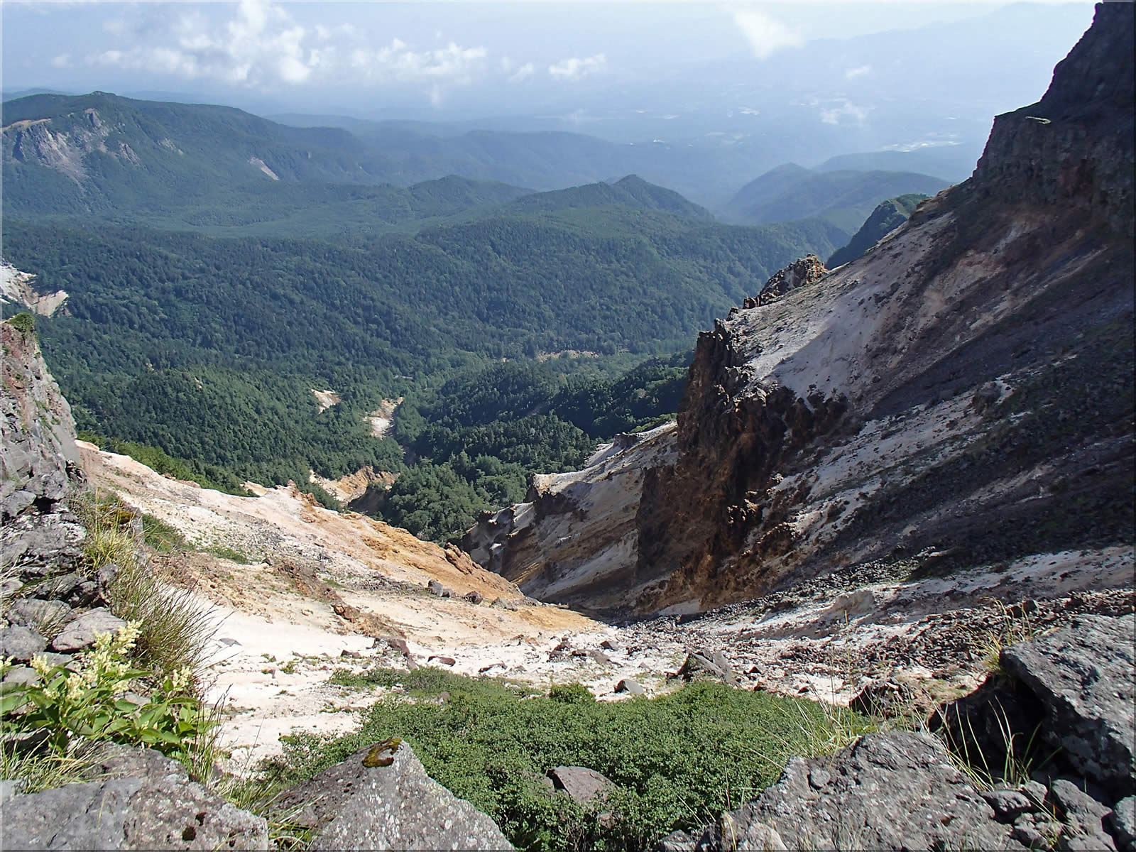 次の2枚は途中からのぞき込んだ硫黄岳爆裂火口の様子。