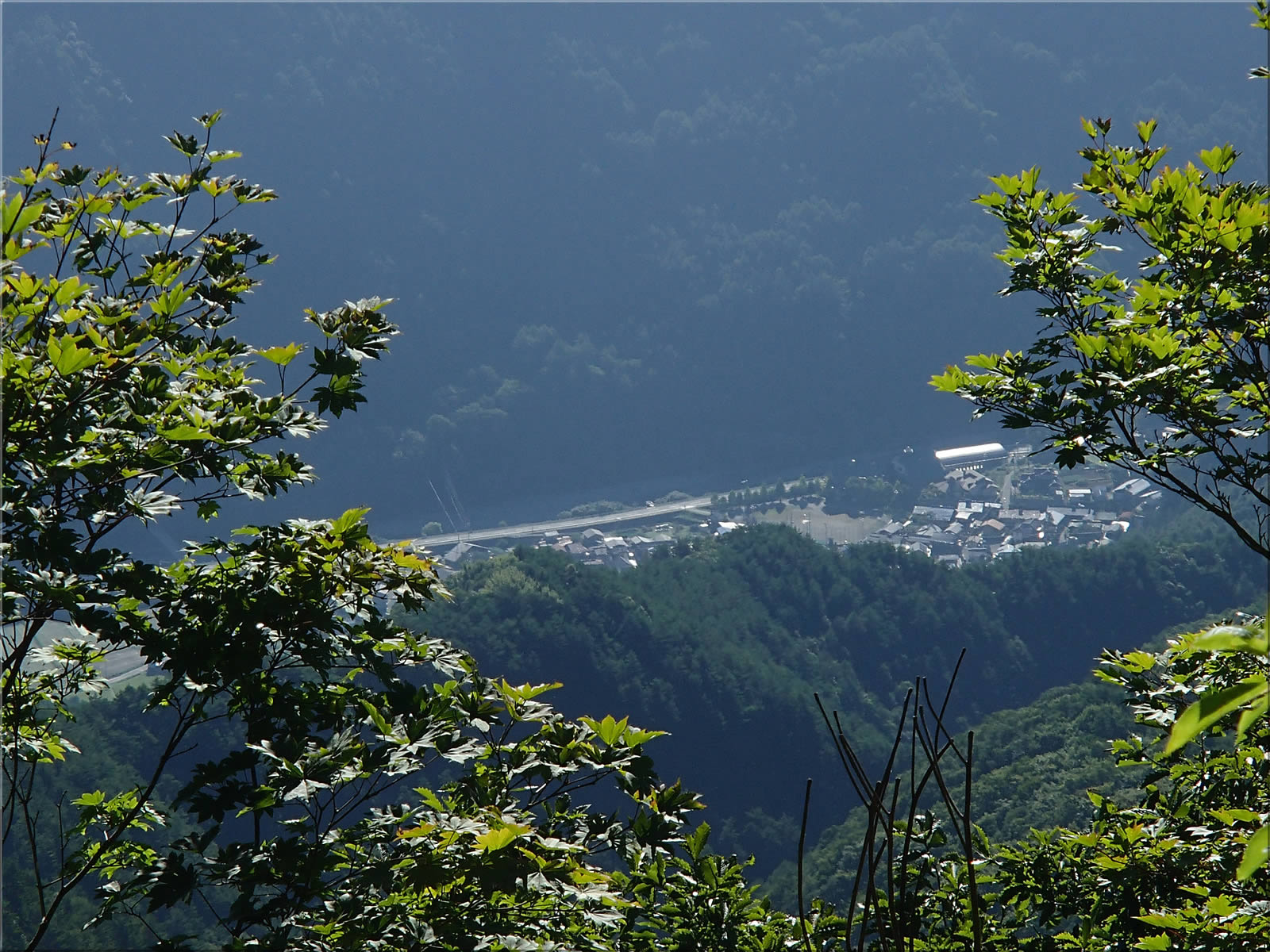 ただしこの時間はまだ逆光でシルエットですので、ここからの展望は帰りに撮ったものを紹介します。なお眼下には市野瀬の集落が見えています。