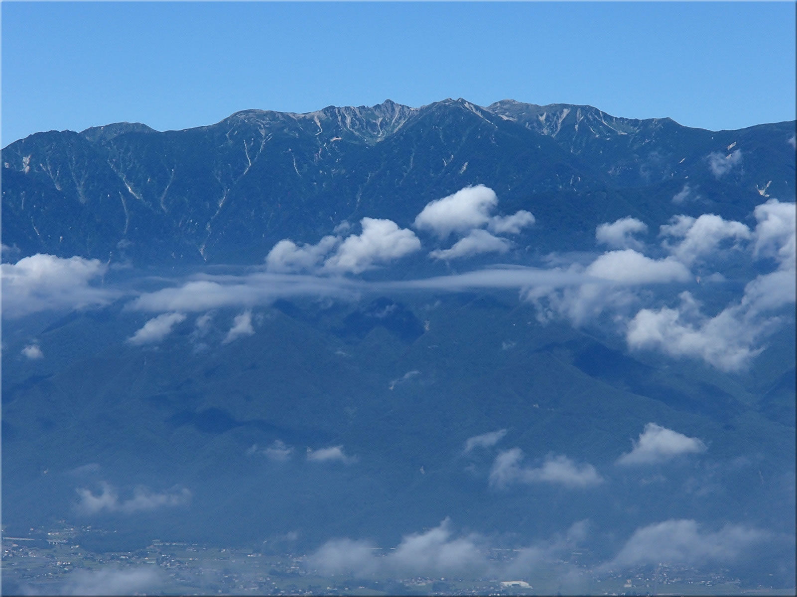 雲海が少し邪魔ですが(^^;、でも中央アルプスのピークは皆きれいに見えています(^^)。