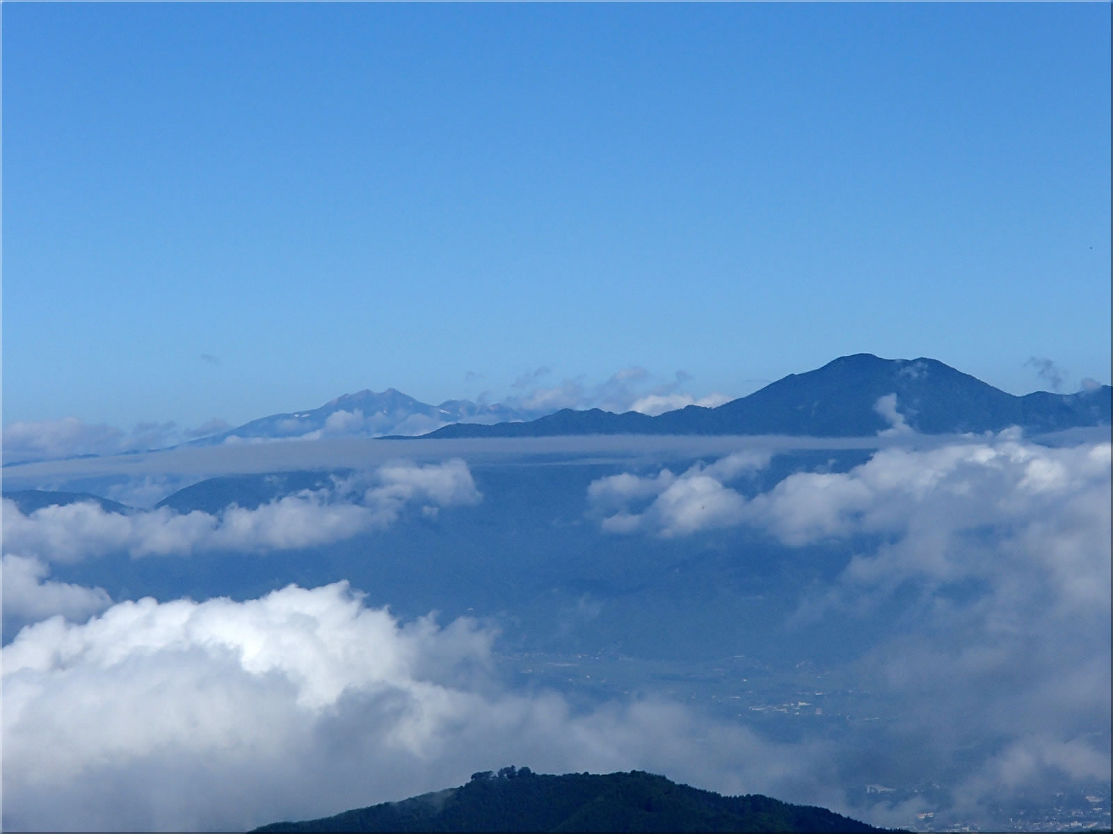 車山とその右側に見える四阿山(多分)と湯の丸山をズーム。