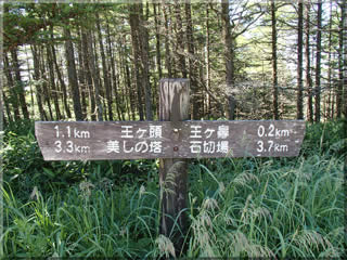先ほど登ってきた時は、この辺りでアンテナ塔の方の写真ばかり撮っていましたので、道路の反対側にひっそりとあるこの標識を見落としてしまったようです(^^;。では気を取りなおして王ヶ鼻の方に進んでいきます。