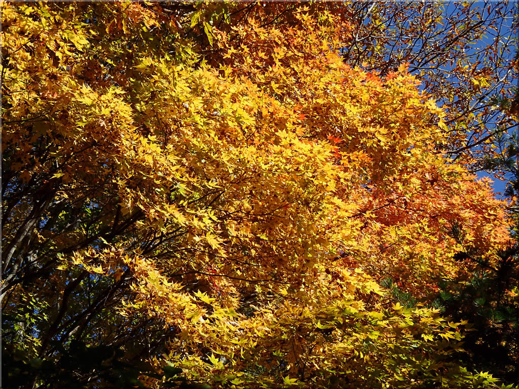 日射しがあたると低木の紅葉が黄金色に輝きます。