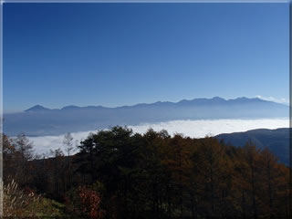 八ヶ岳ですが、雲海はそろそろ消えかかっていて、稜線にはガスがもう湧いてきていました。
