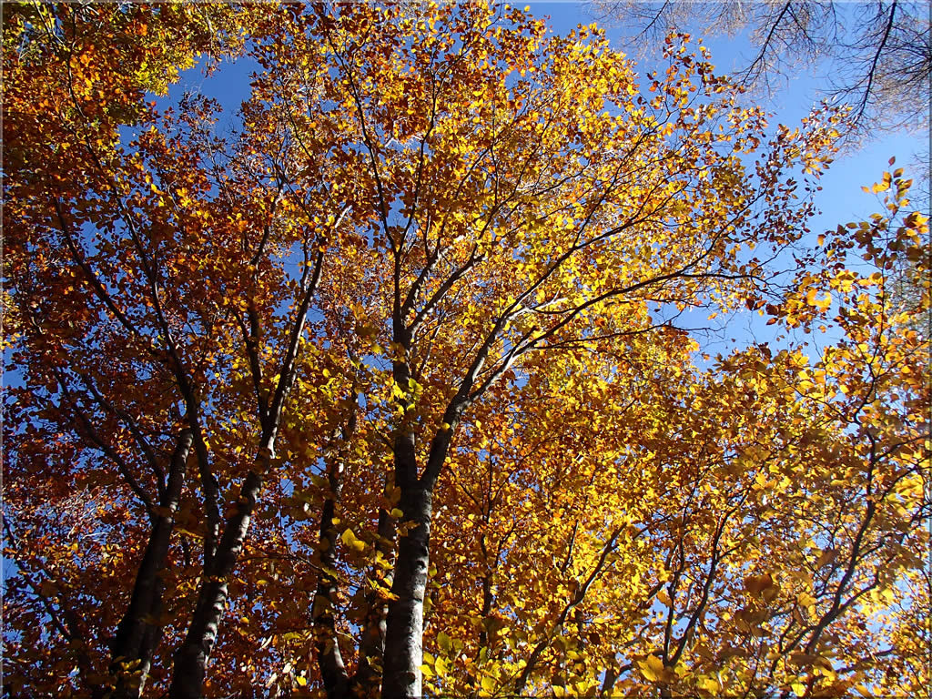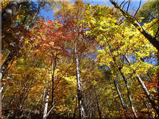 このあたり、まだ緑〜黄緑が主体で色付き始めという感じです。ただ低木の黄色い黄葉はすでに鮮やかで見頃となっていました。