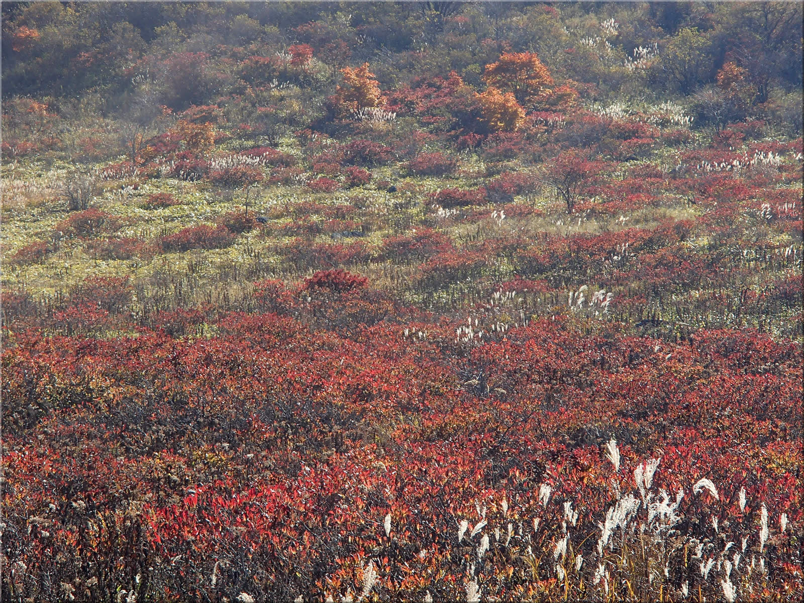 この時期の車山は草紅葉というイメージが強いのですが、北面にある広葉樹の紅葉はどんな感じになるのだろうと見てみたかったというのもありました。