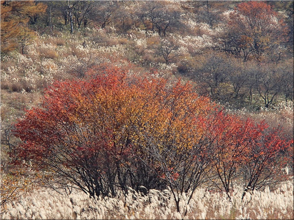 こちら側は赤い紅葉はそれほど多くないのですが、1個所、もみじが多い場所があります。