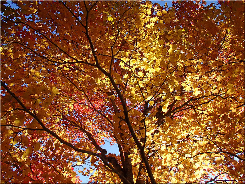 斜面もほぼピークの見事な黄葉です。順光なのでよけいに鮮やかに見えているかもしれません。