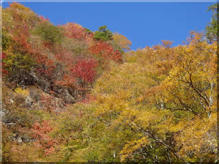 10-3の標識を過ぎた辺りから紅葉の色彩が鮮やかになっていきます。