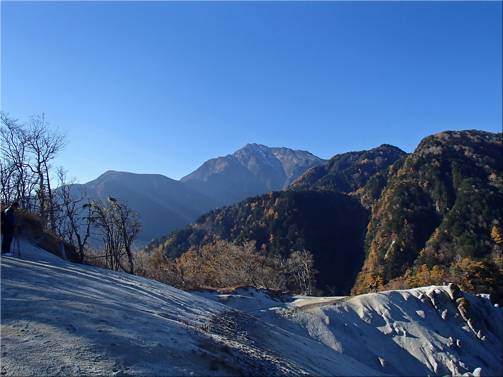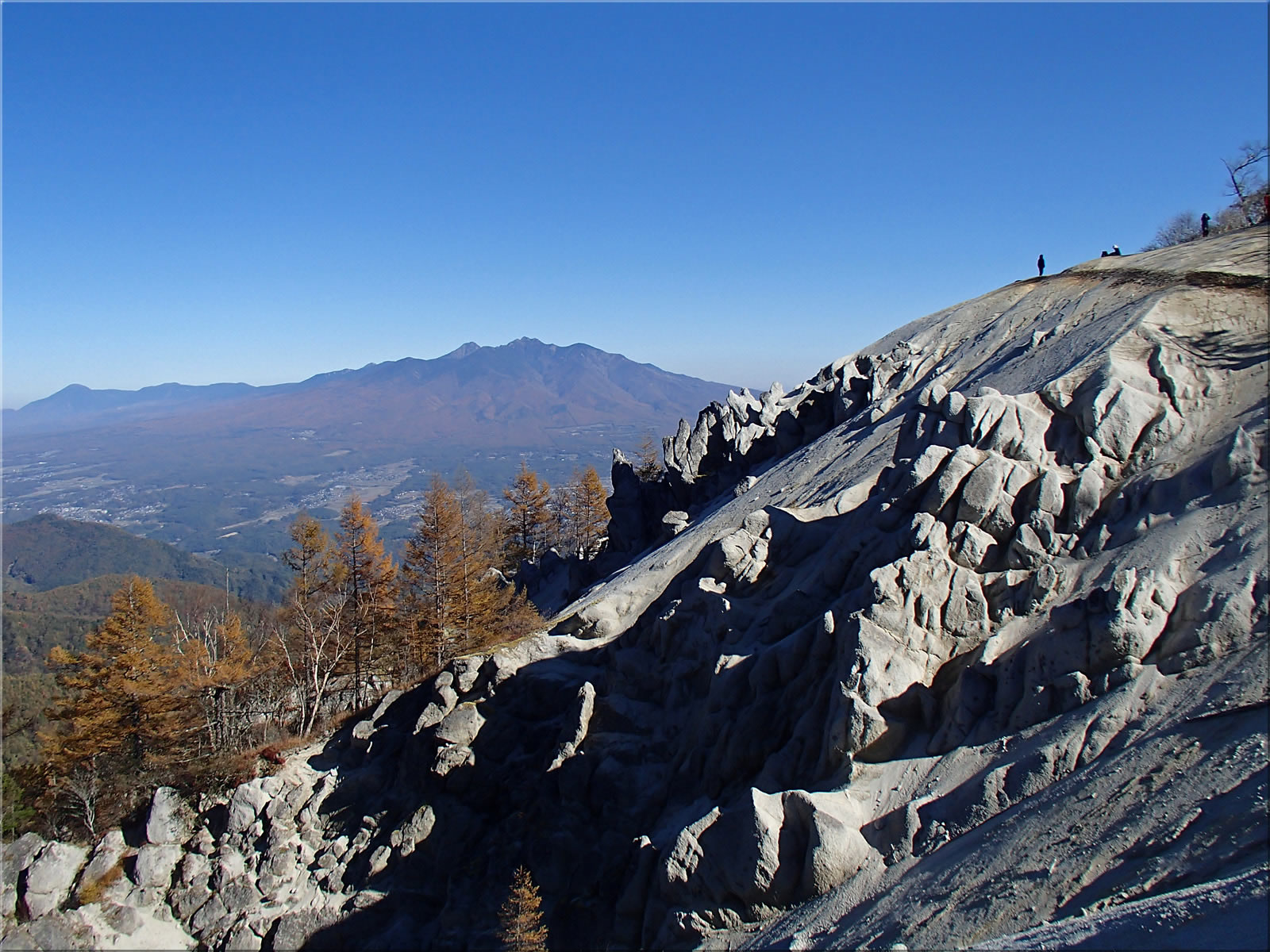 ここまでほとんど展望が無かったのに、この先でいきなり展望が広がります。しかも足下は一面の白い砂です。そして今日は雲一つ無い快晴で最高です(^^)。八ヶ岳もきれいに見えていました。