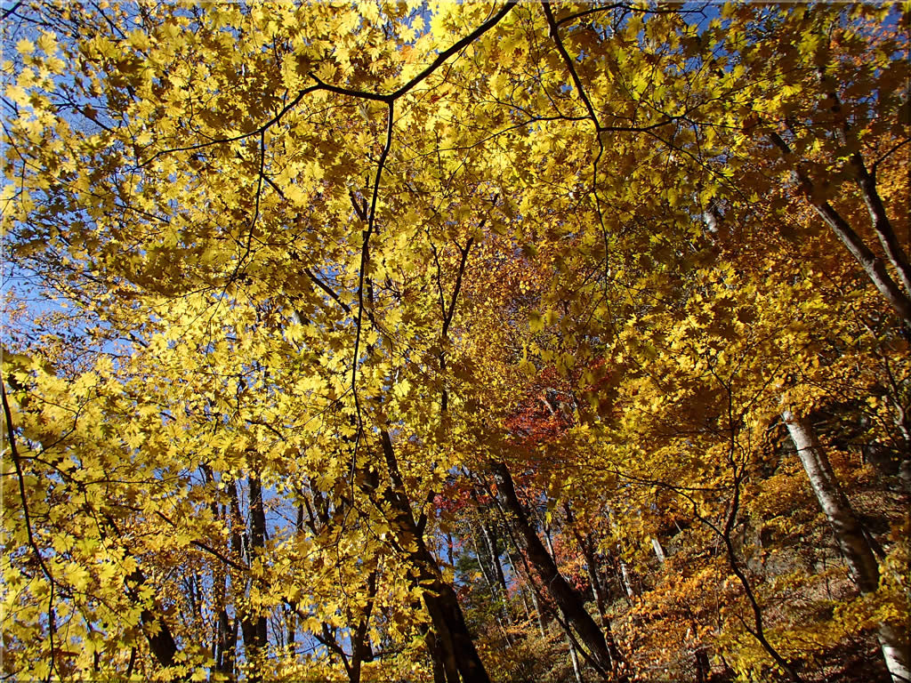 スタート地点はまだ黄緑が主体でところどころで色付きの良い紅葉があるという感じです。
