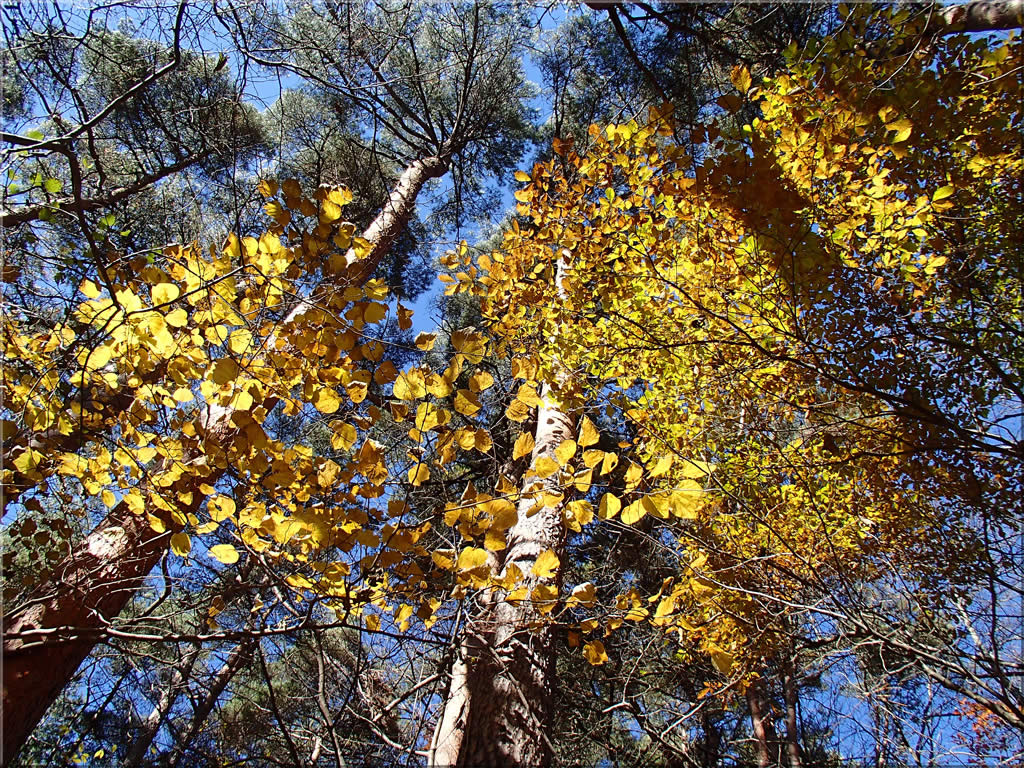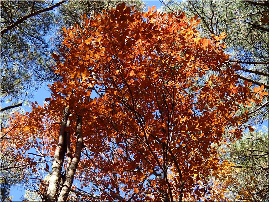 山頂近くの広葉樹はほぼ落葉していましたが、中にはまだ葉を沢山残している木もありました。