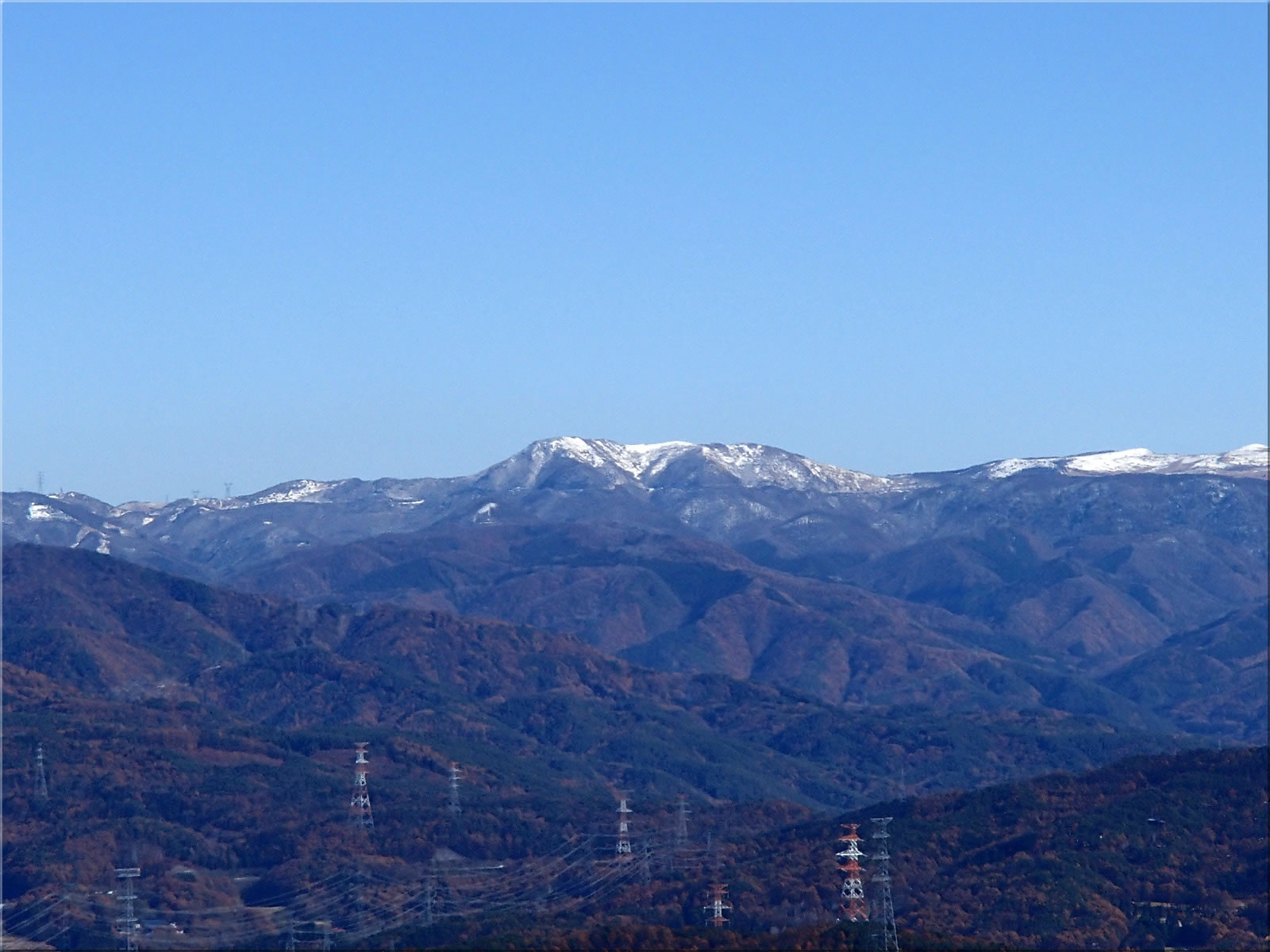 県北部側に若干低い雲がありますが、でも上空には雲一つ無く、空気も澄んで遠くまで見通すことが出来ます。1300mほどの低山ですが、素晴らしい大展望です(^^)。