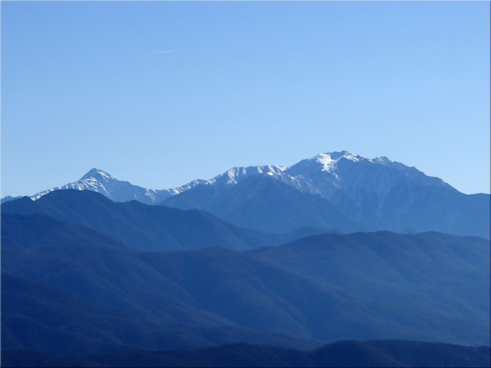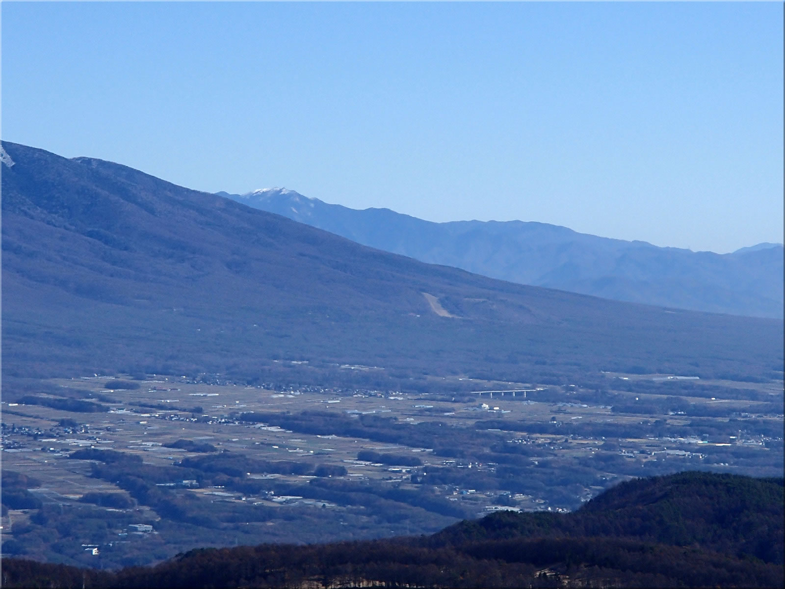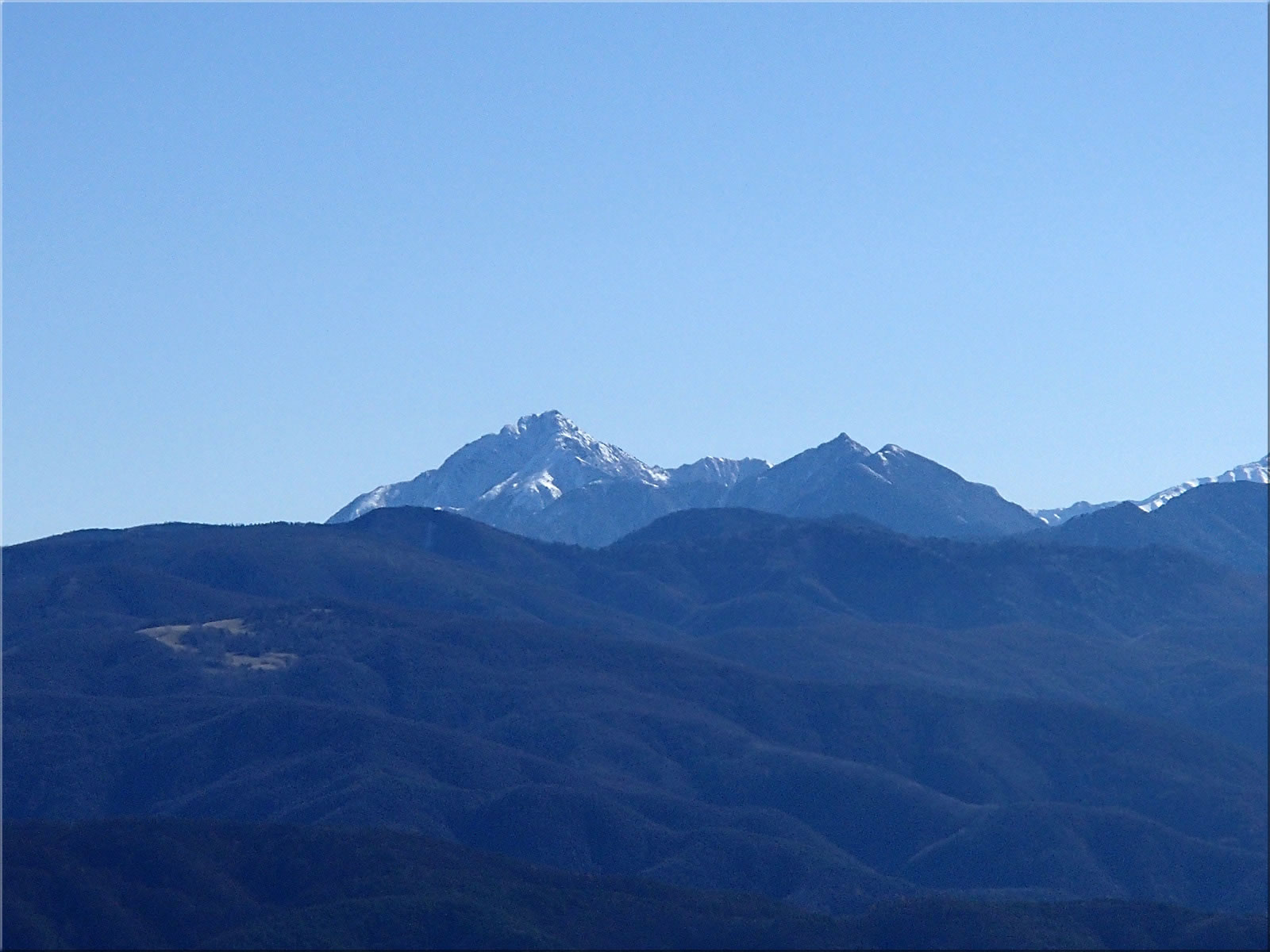 良く見ると西峰のあたりに白い山がちらっとここからも見えました。御嶽山です。