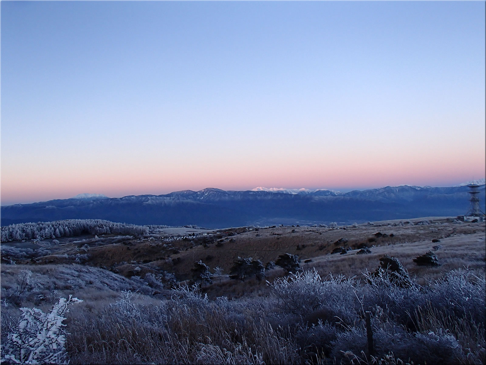 この日は広く高気圧に覆われて快晴が期待出来たのですが、用事があって遠くには出かけられませんでしたので、それなら近場で展望だけでも楽しもうと早朝に高ボッチ、鉢伏山に出かけてきました。またせっかくですので少し早めに出発して、日の出前後の景色の変化も楽しむことにしてみました。