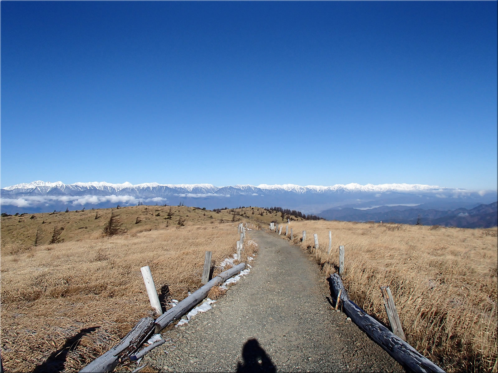 下りは常に正面に北アルプスを眺めながらの最高の散歩道です(^^)。