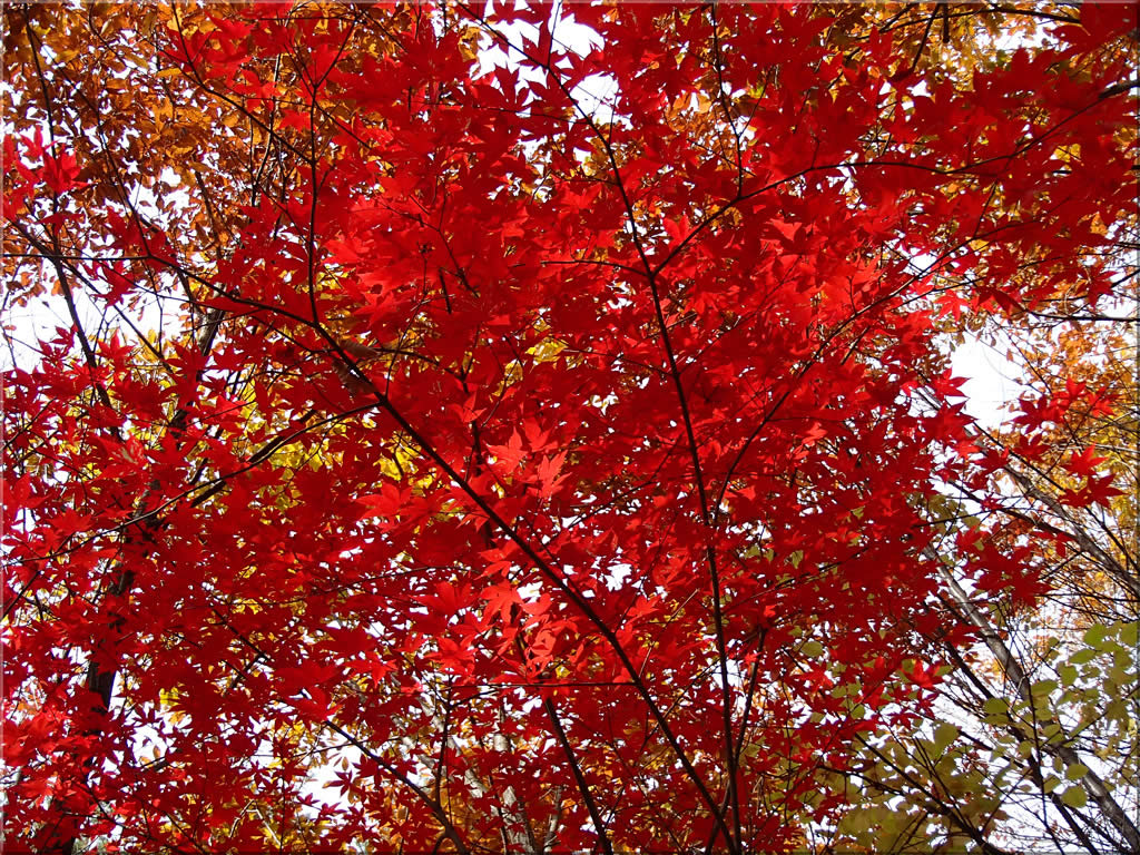 途中に1本だけある赤いもみじ。この赤は目立つので、毎回ここで撮影しています。