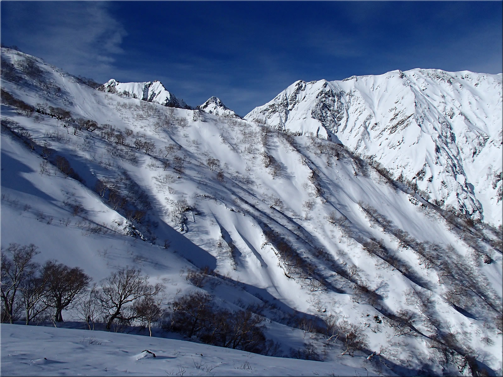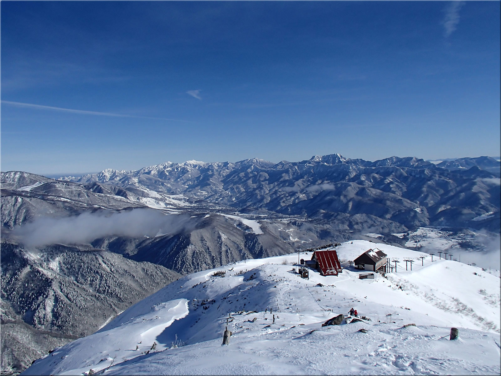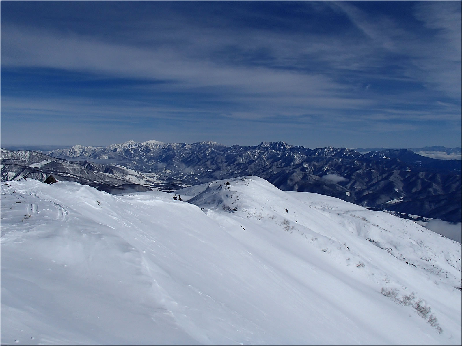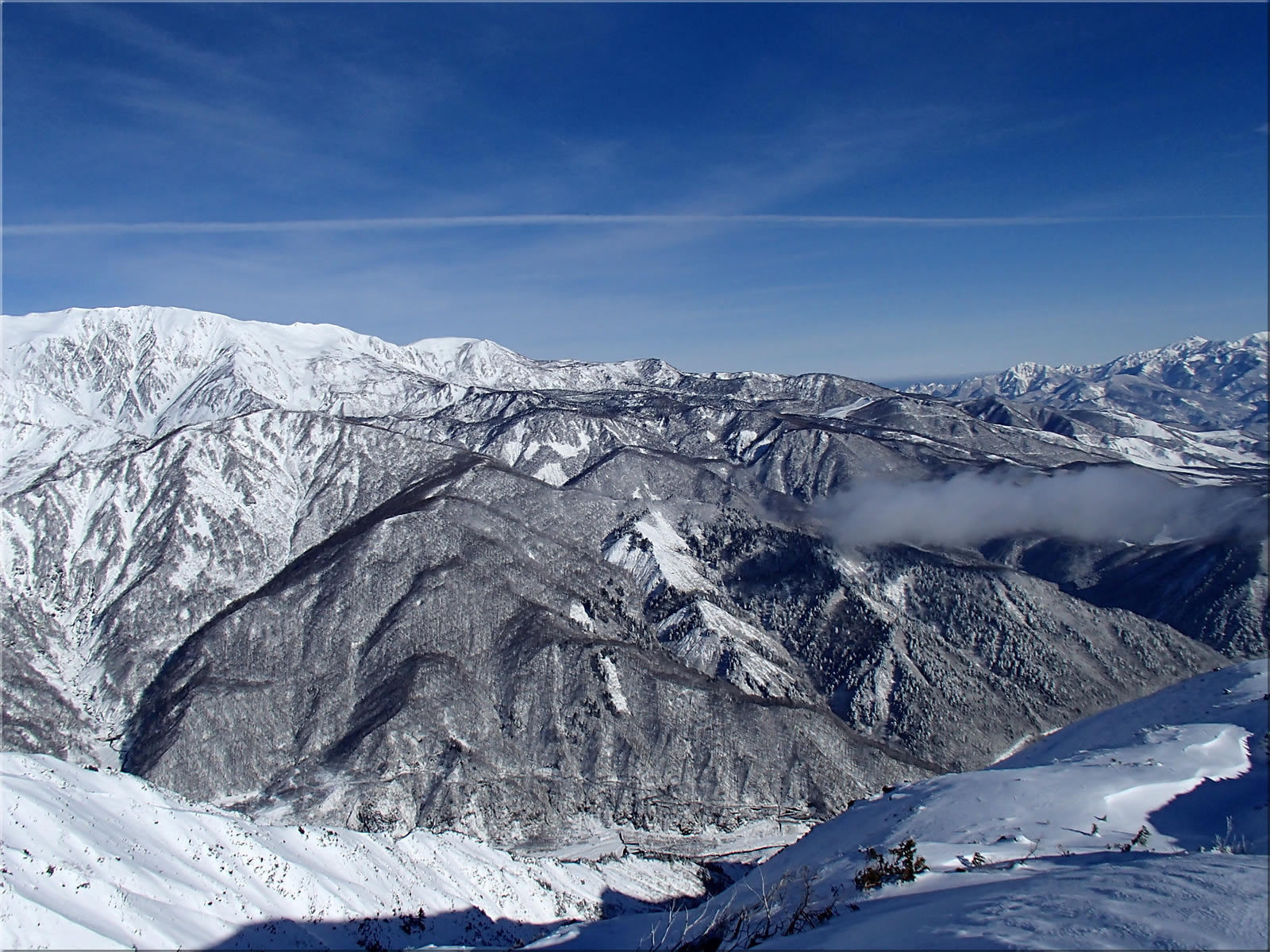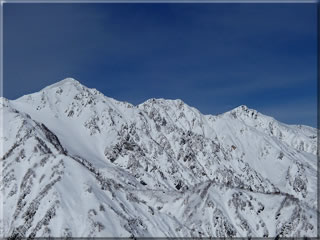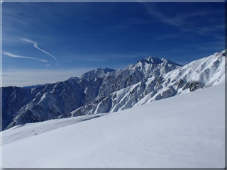 白馬乗鞍岳と天狗原をズーム。あちらの積雪はどうなんだろうか。