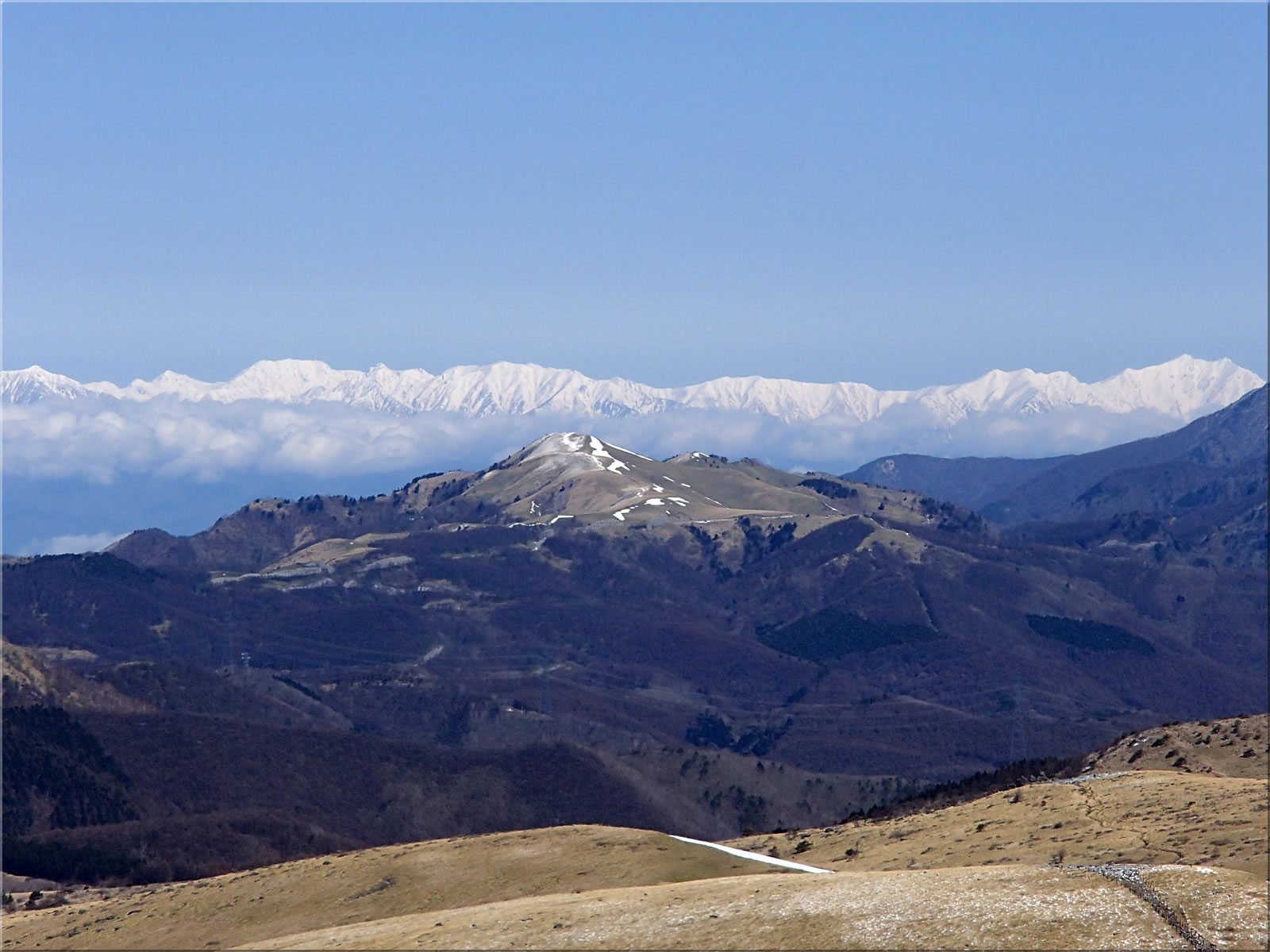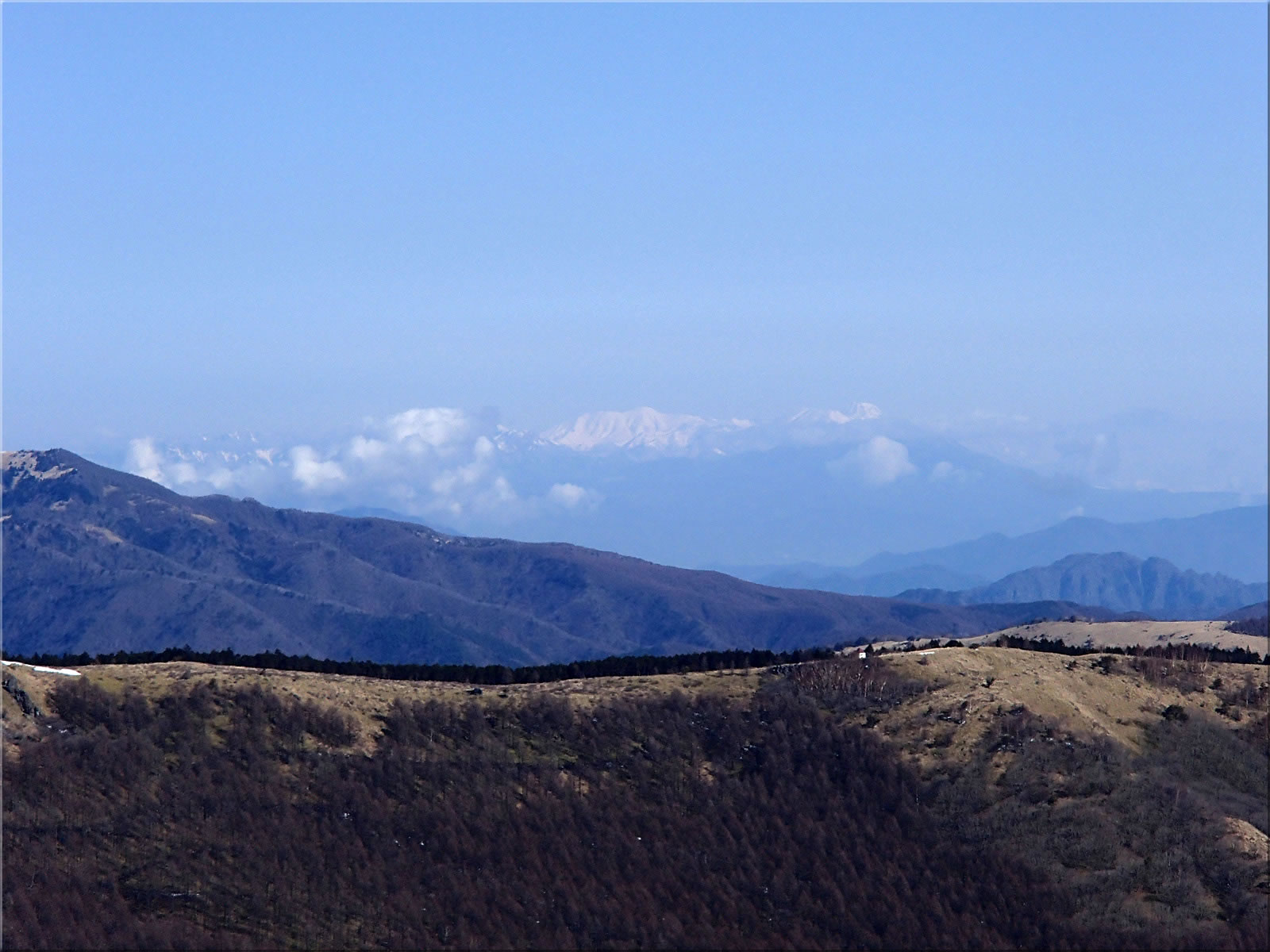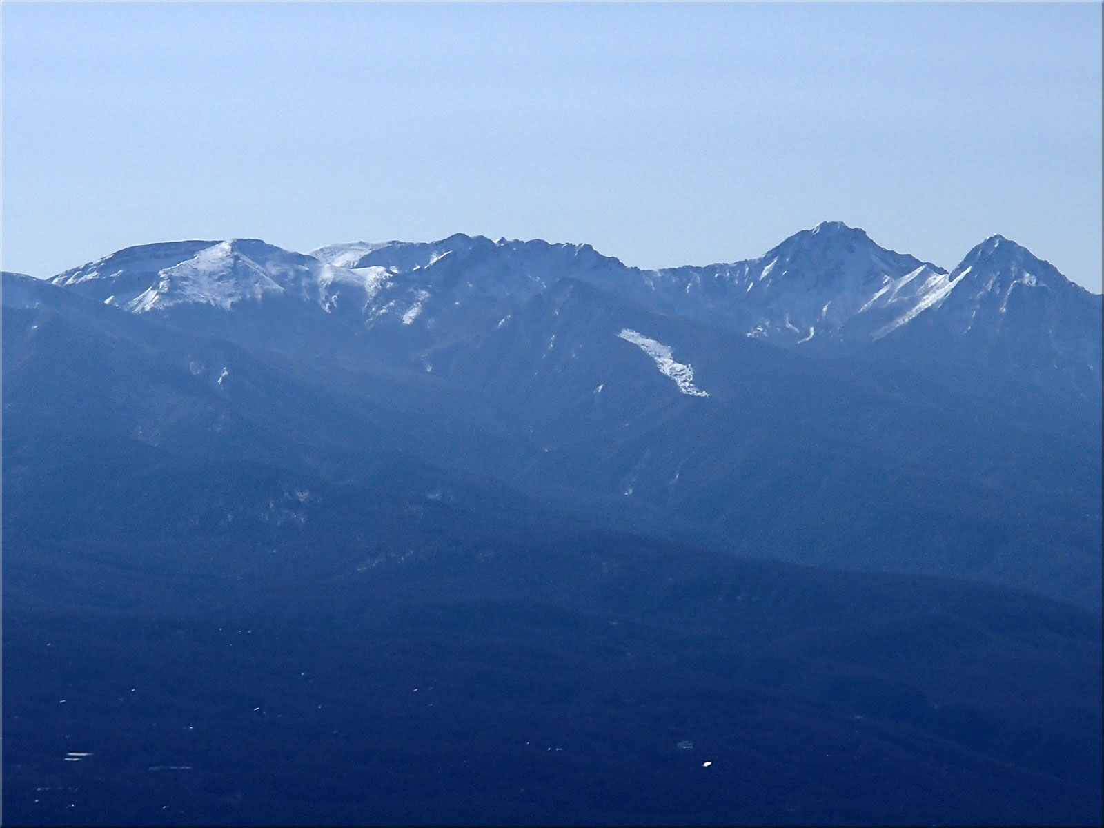 美ヶ原をズーム。五竜や白馬岳のピークがちょこんと見えています。
