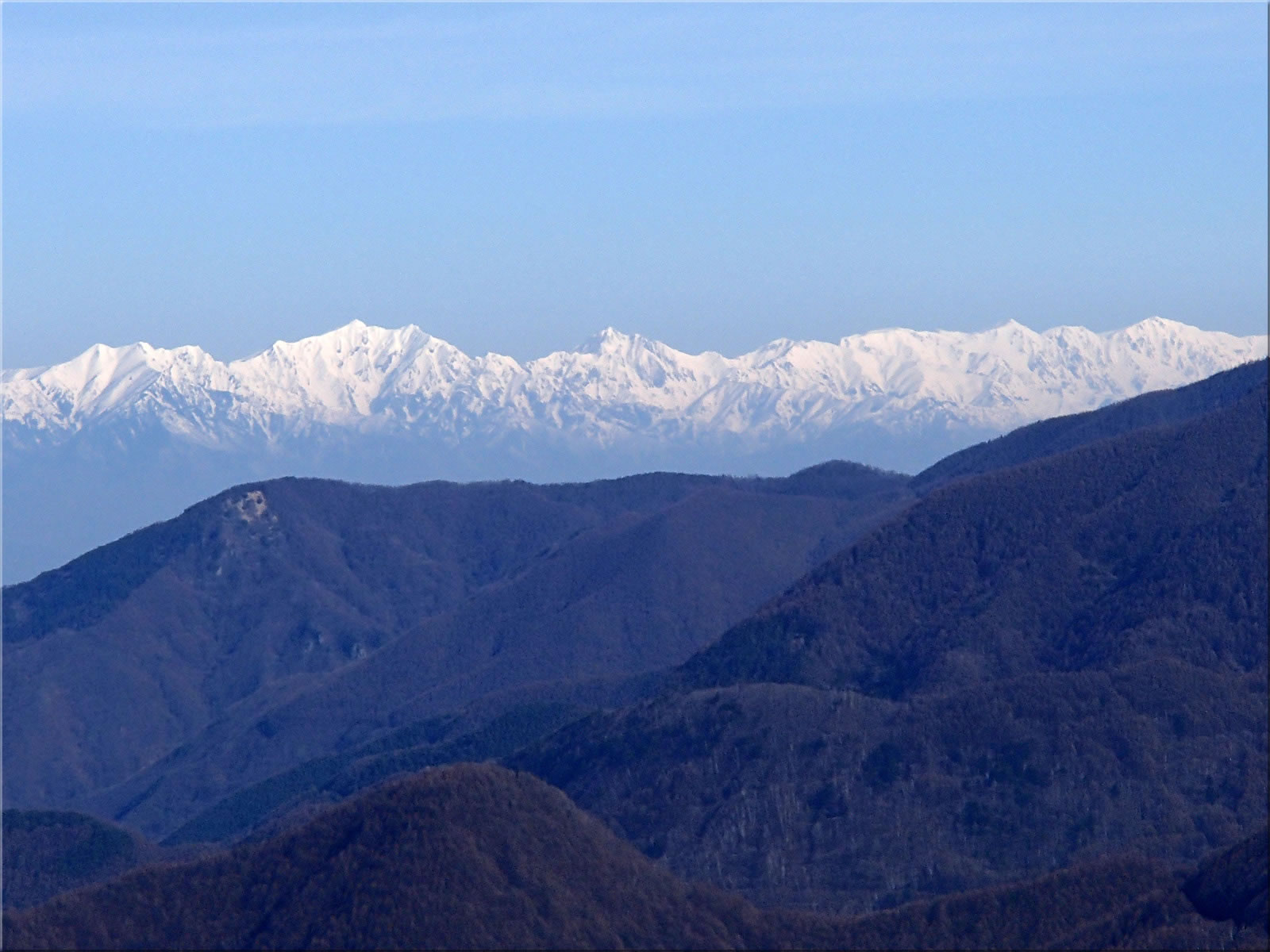 北アルプス槍穂高をズーム。槍が今日はくっきりと見えています。