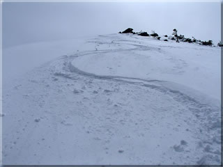 雪は柔らかで踏み込めば膝程度まで削れてくれました(^^)。ああ楽しかった(^^)。今回は青空バックに滑ることが出来なかったのが少し残念ですが、でも滑りの方は滑った斜面いずれも楽しく滑ることが出来ました。