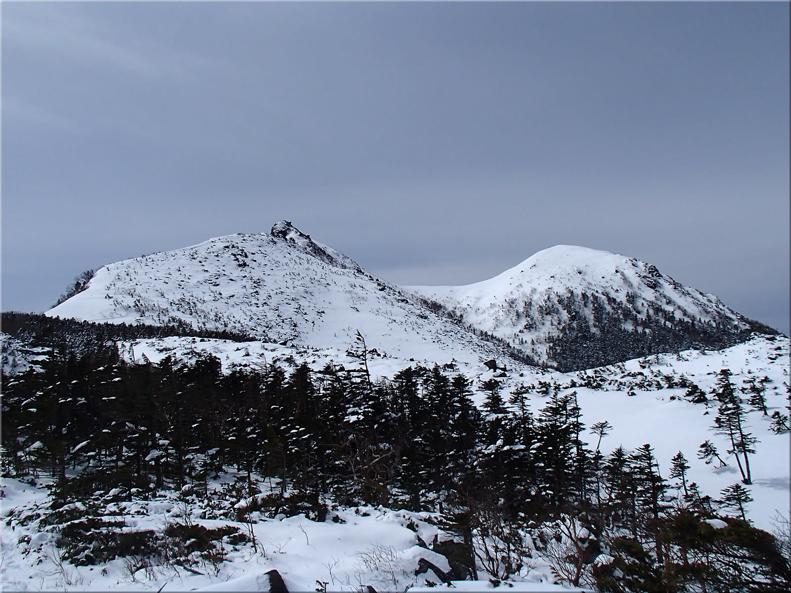 先週末の大雪がまだ残っていることを期待してこの日、地元の天狗岳に出かけて来ました。天気予報では朝は晴れていても午前中から曇りということで、せめて山頂に立つまでは青空でいて欲しいと願っていたのですが、残念ながら黒百合ヒュッテを過ぎた辺りから急速に薄雲が広がってしまいました。ただ周囲の山にガスがかかることはなく、高曇りで見渡す限りの山は皆見えていました。