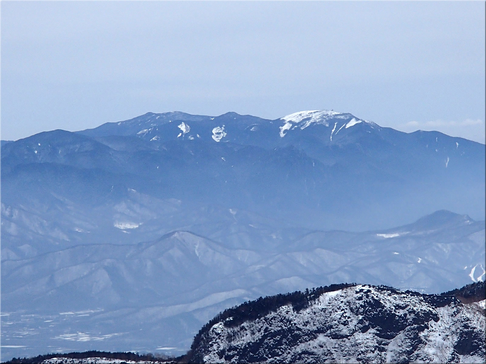 車山をズーム。車山も今回の降雪で、まるで厳冬期並みの白さになりました。