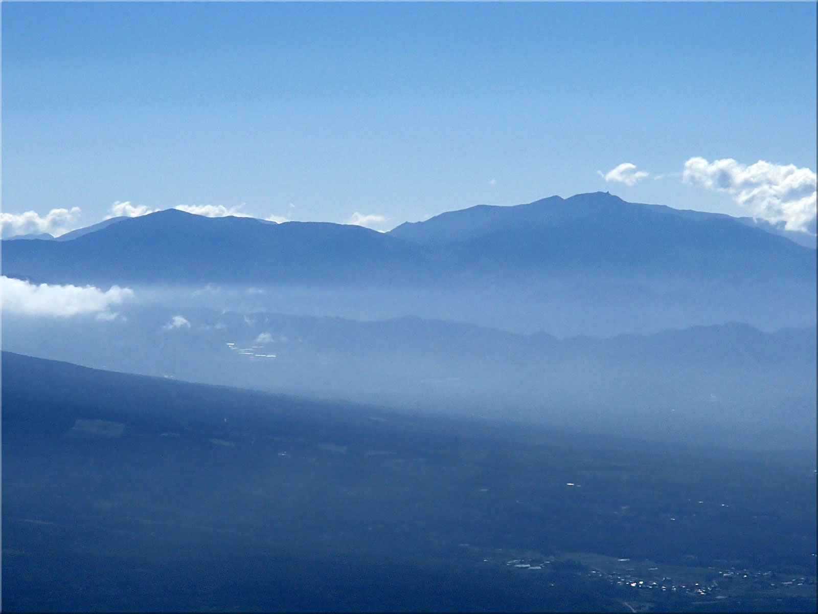 北アルプス北部の白馬岳方面をズーム。かすみながらもこれだけ見えていれば御の字です(^^)。先々週は白馬岳にでかけ、ほぼ山頂から滑り降りました。その時の様子はこちら。