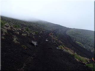 7時41分、新七合目の小屋を通過。まだあまり疲れていませんので、休憩は八合目で取ることにしてどんどん登っていきます。