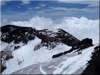 八合目が近づいた頃、山頂方面はクリアな青空になりました。がぜん元気が出ます(^^)。