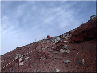 八合目の手前の狭い岩場は、夏場はすれ違いで大渋滞になる場所です。