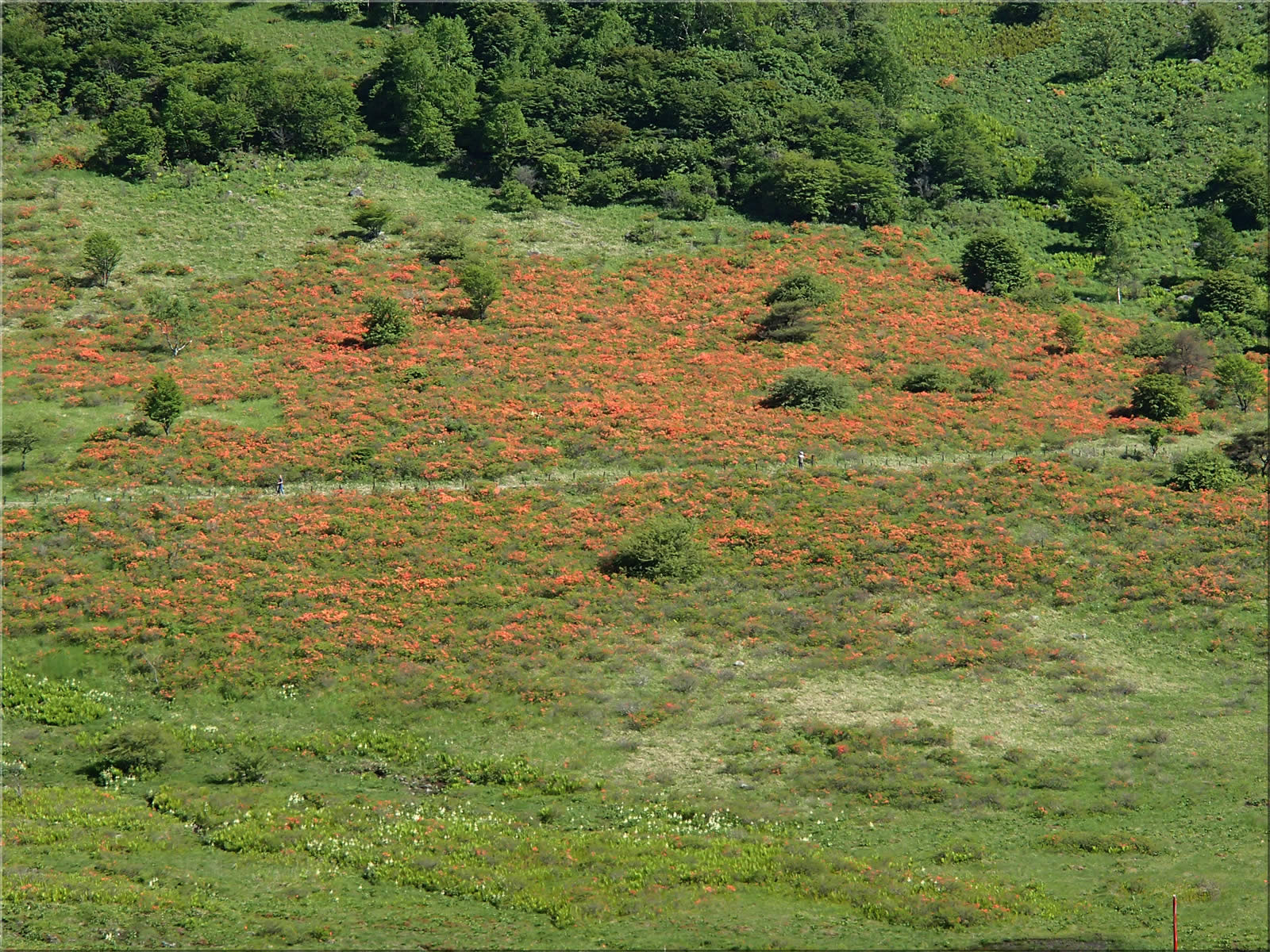 昨年は白いコバイケイソウが随分と少なかったのですが、今年はコバイケイソウが随分と目立ちます。逆にオレンジ色のレンゲツツジがこの辺りは少し少なめに感じました。