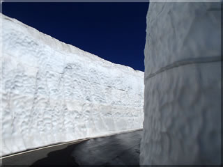 バスは位ヶ原の雪壁に囲まれた道路を走り始めます(^^)。今回の楽しみのひとつがこの乗鞍の雪壁でした。