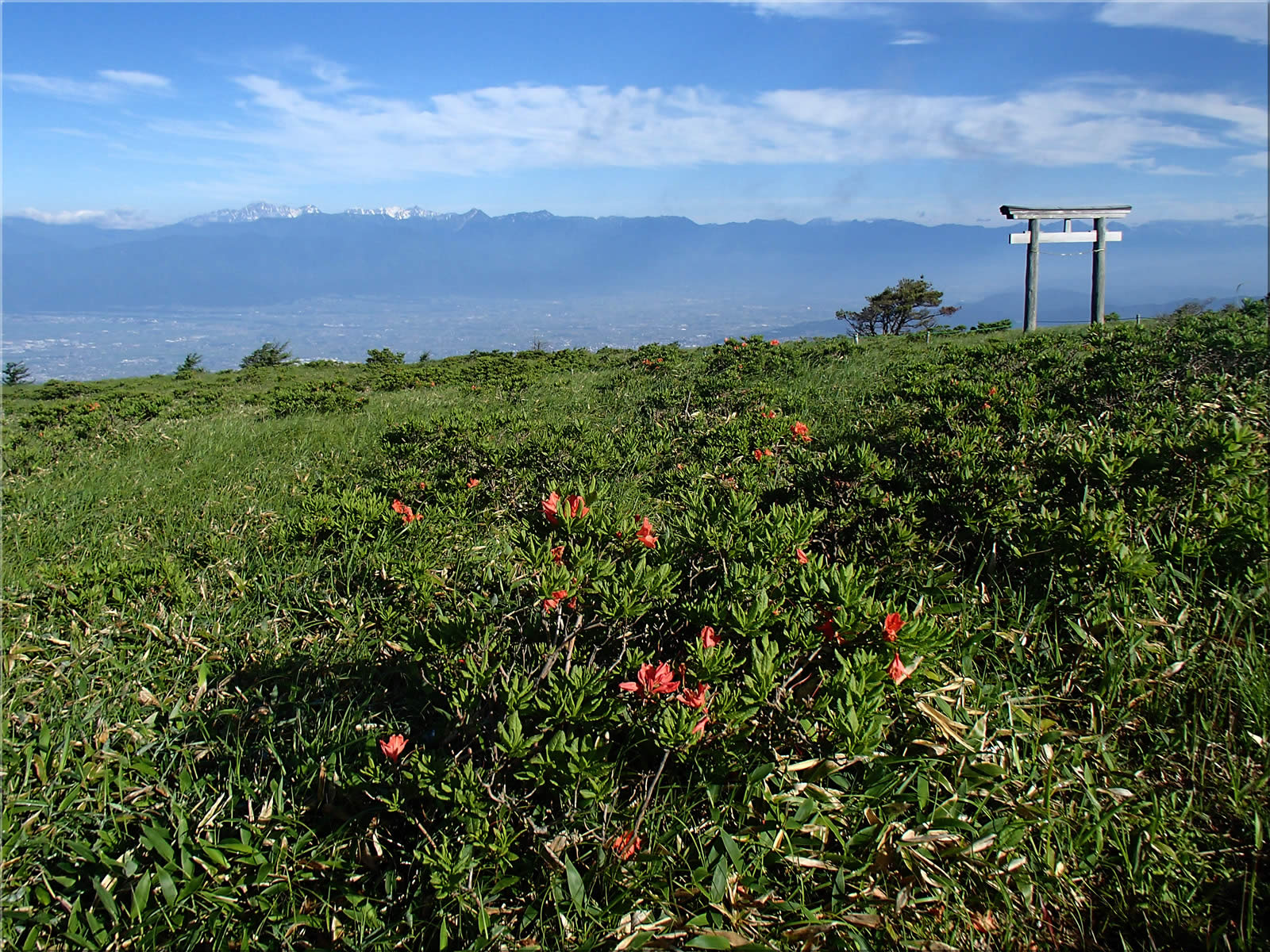 ああ、レンゲツツジに染まった斜面の向こうに北アルプスを眺めたかったなあ(^^;。