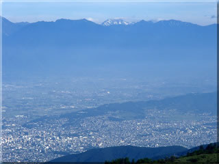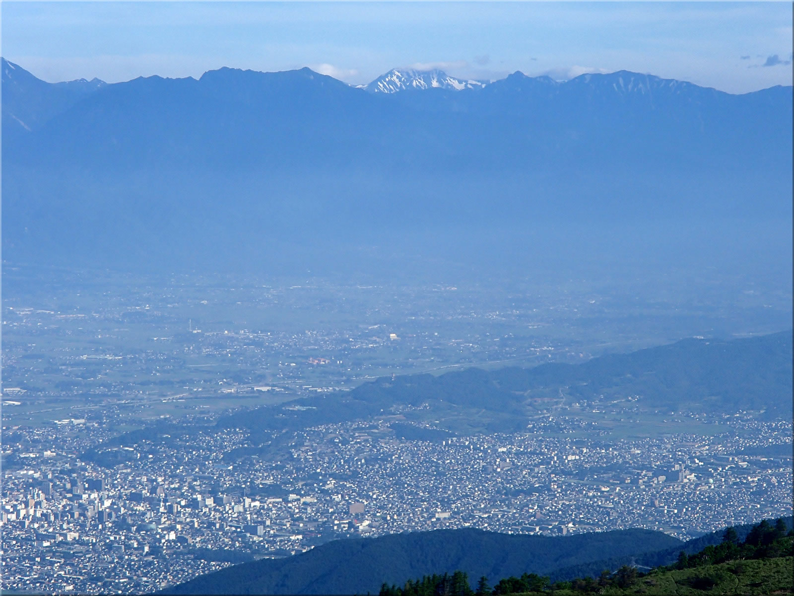 餓鬼岳、立山、針ノ木岳方面をズーム。手前の街は松本です。