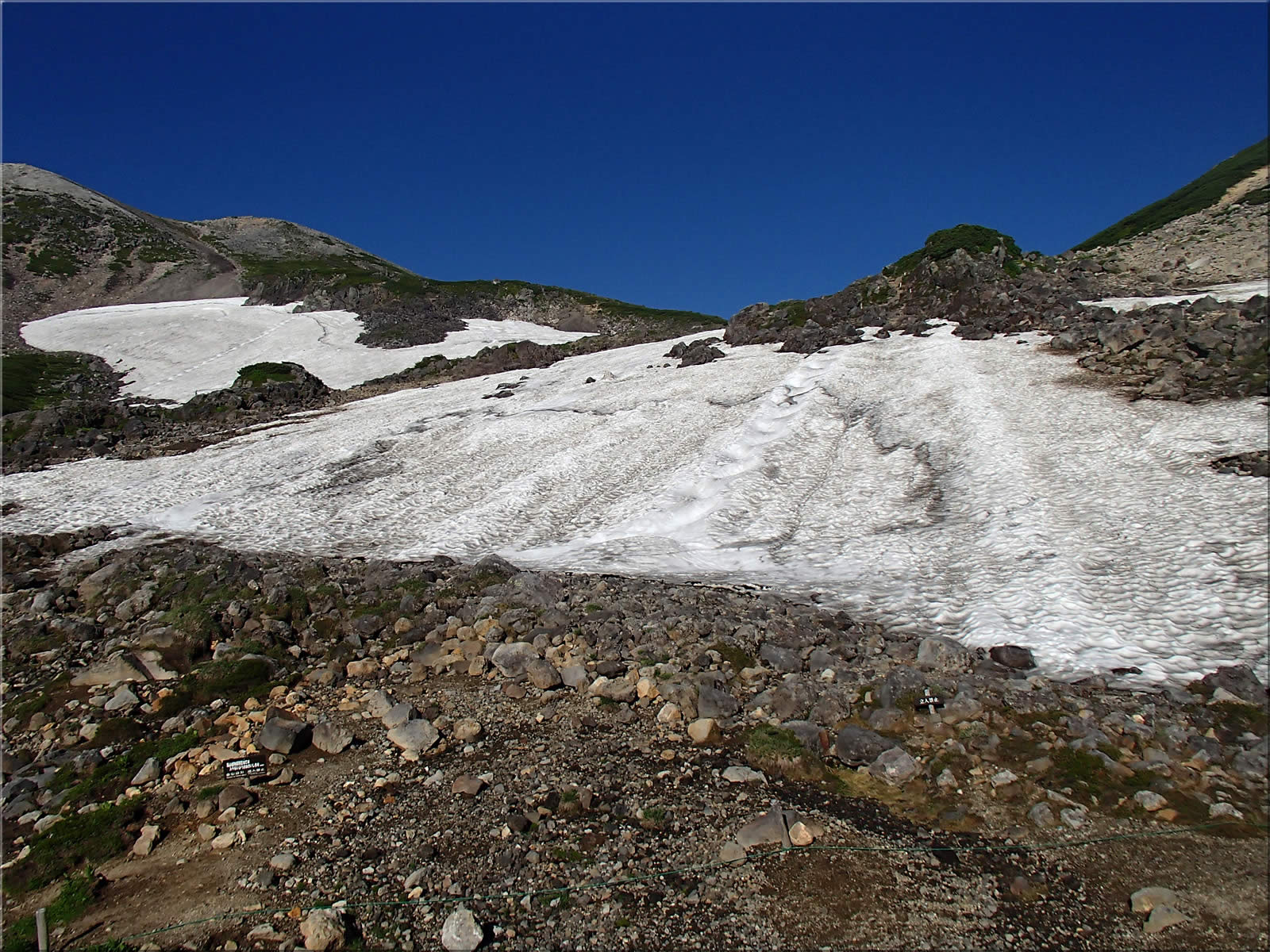 登山道に雪がある場所は次の写真の2mほどだけでした。もうアイゼンは不要です。間もなくここの雪も無くなることでしょう。