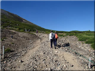 休憩後、剣ヶ峰山頂に向けて再び歩き始めます。