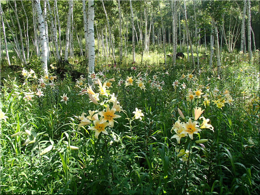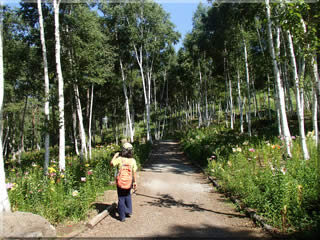 続いて一番下のしらかばゆりエリアに向かいます。ロマンスエリアが木陰が無く日射しが猛烈に熱かったので、こちらの林の中の散歩道はとてもうれしかったりします。