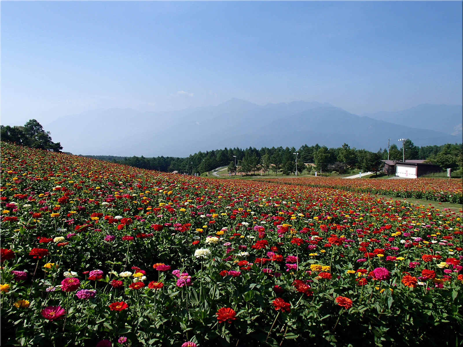 入笠山からの帰り、せっかく近くまで来ていますので、同じ富士見町にある富士見高原花の里に立ち寄って行くことにします。目当ては見頃を迎えているという百日草の大お花畑です