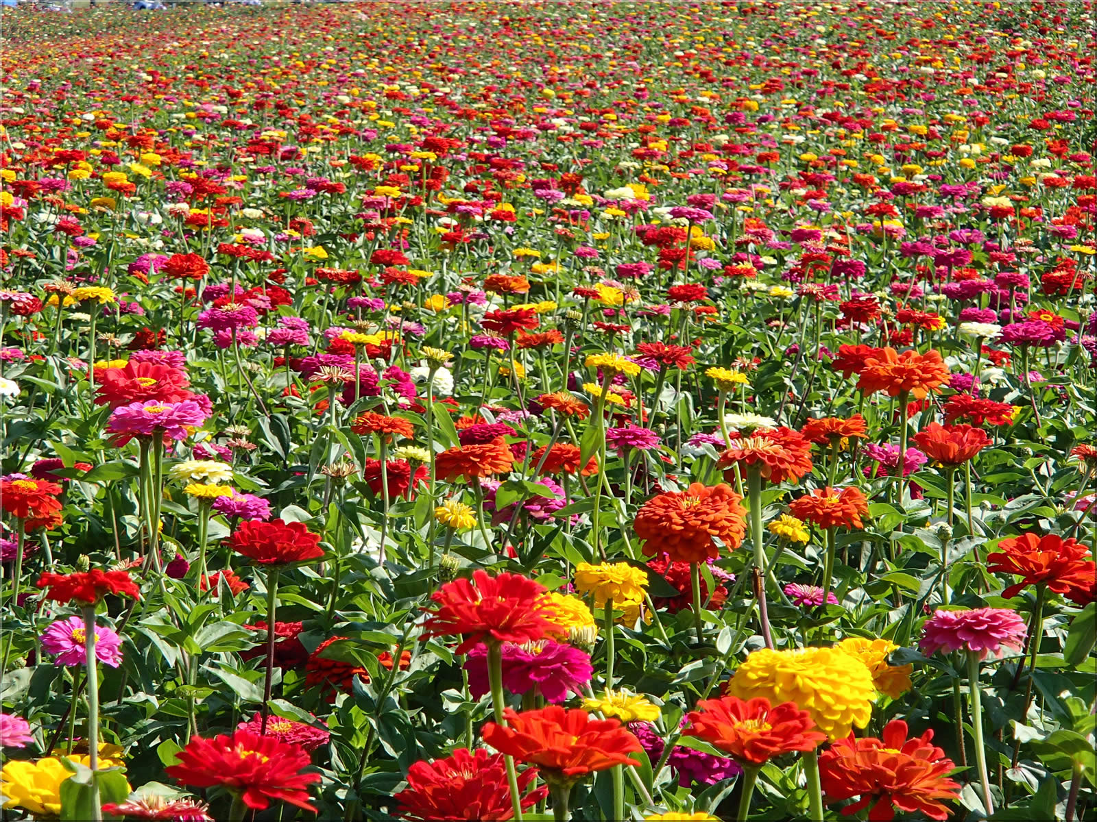 昨年はゆりが一面に咲いていた場所が、今回は様々な色の花が咲き乱れる百日草のお花畑となっています。ゆりも見事でしたが、百日草もこれだけ多いと本当に圧倒されます(^^)。