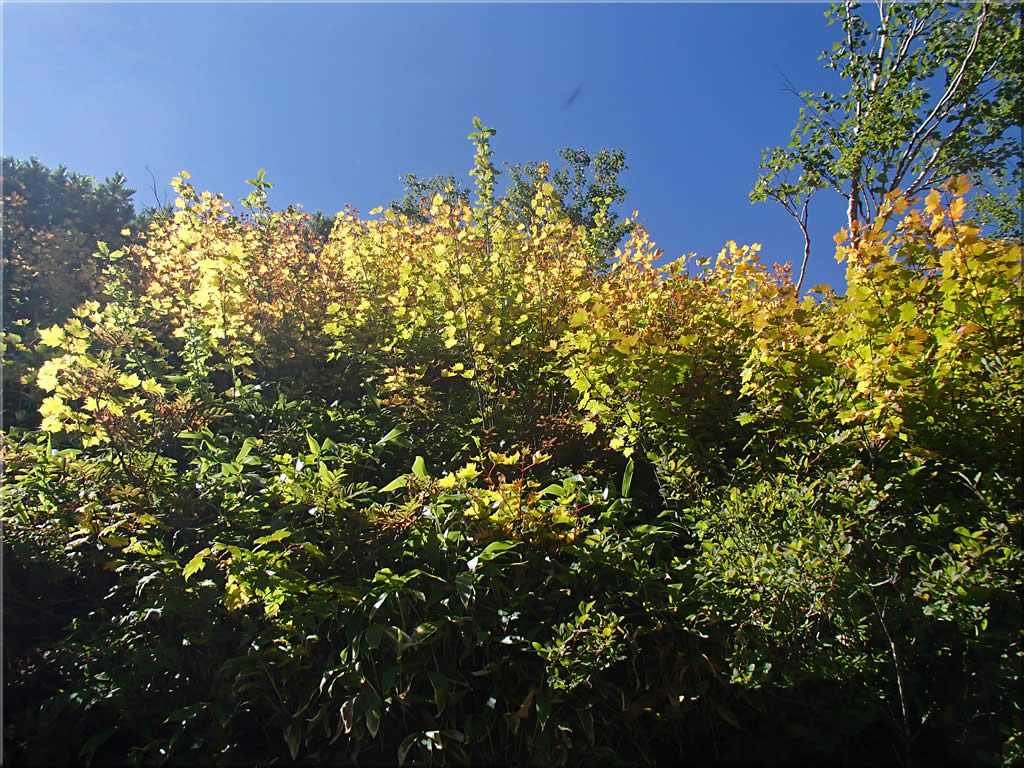 登るにつれて、ところどころで紅葉が始まりかけた木を見かけるようになります。