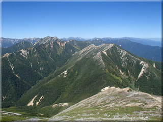 前常念岳への稜線。いつか三股から前常念を経由して常念岳、蝶ヶ岳を1日で歩いてみたいです。