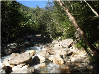 朝登ってきた一ノ沢沿いの登山道を見下ろします。