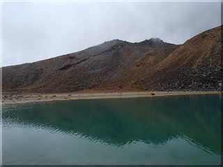 二の池をズーム。日射しがあると池がエメラルドグリーンに見えてきれいです。