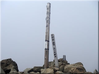 周囲はガスでほぼ真っ白です(^^;。ただし上空は時々青空がのぞきます。そして時々二の池方面のガスがすーっと切れます。