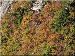 次の2枚は紅葉の斜面をズームしたもの。ちょうどこの辺りが一番見頃を迎えているようです。