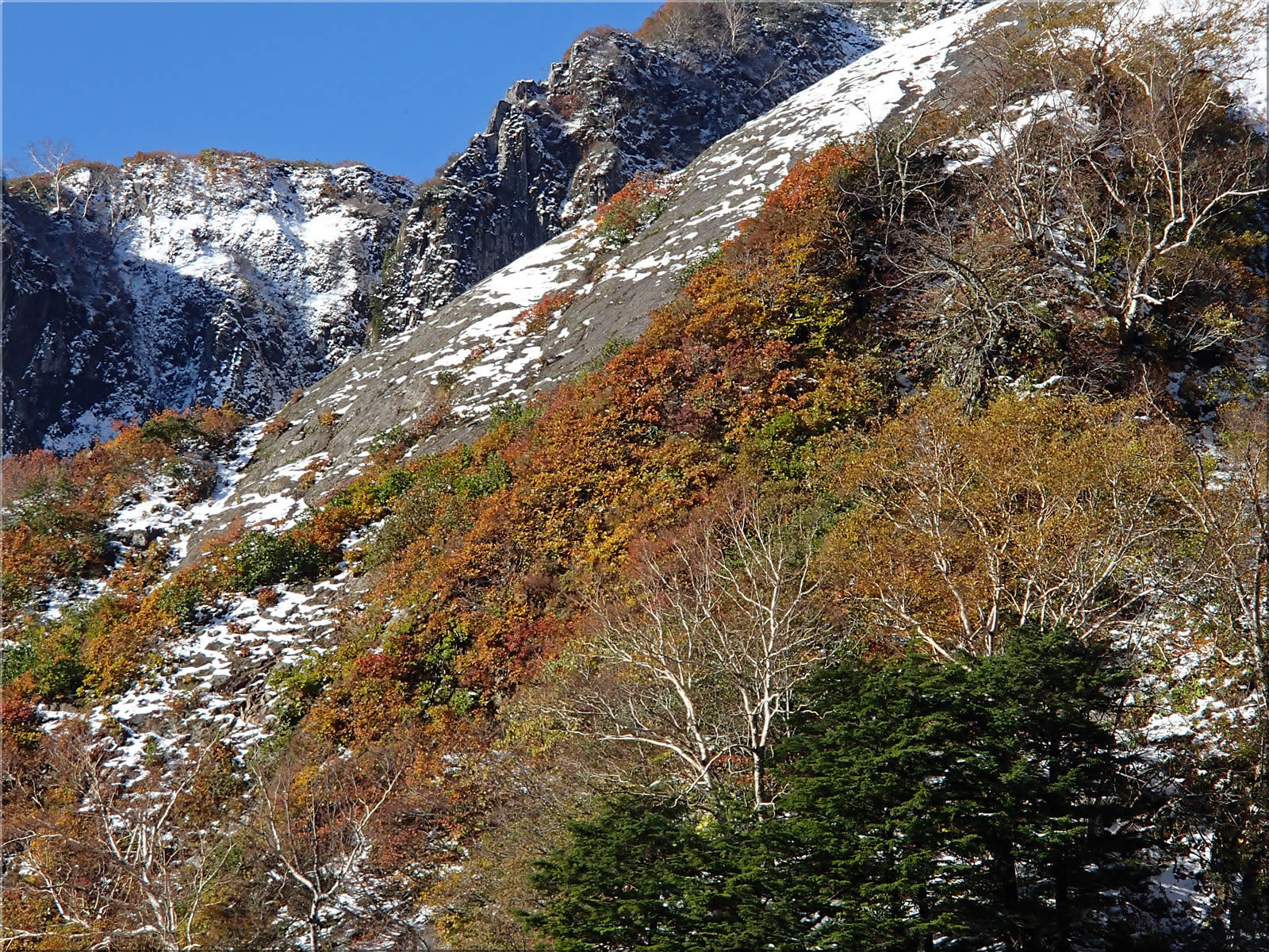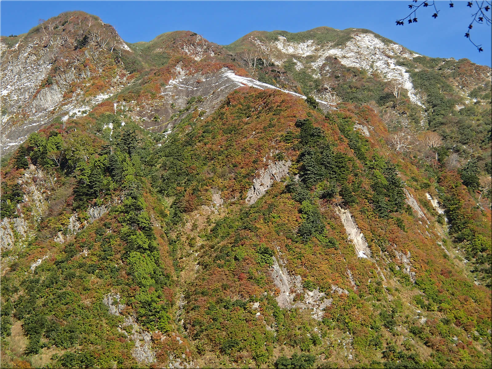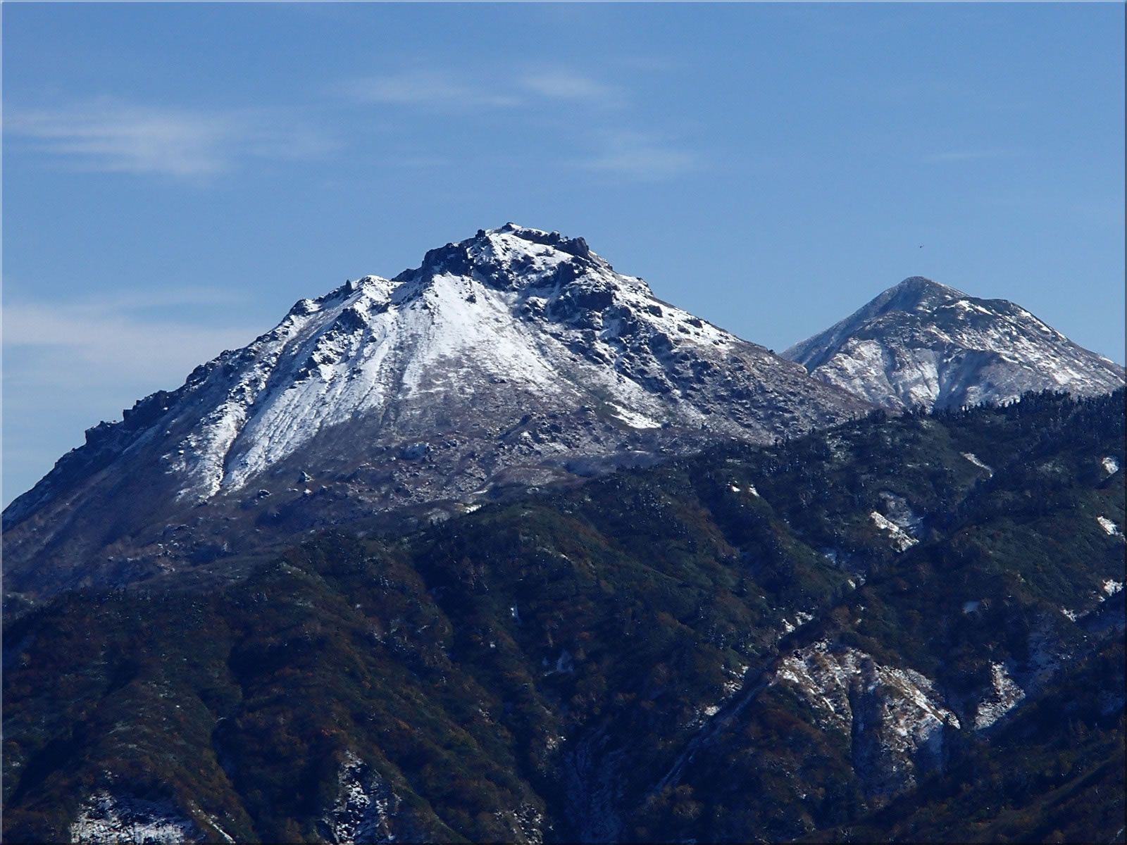 昨日か一昨日、台風が通り過ぎたあとに寒気が入って降雪があったようで、上の方はうっすらと白くなっています。