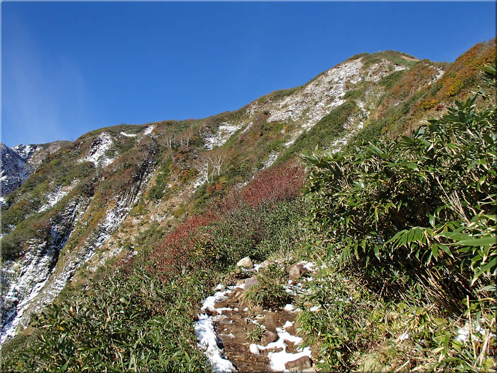 ここから見上げる布団菱の景色がいかにも雨飾山という感じがします。