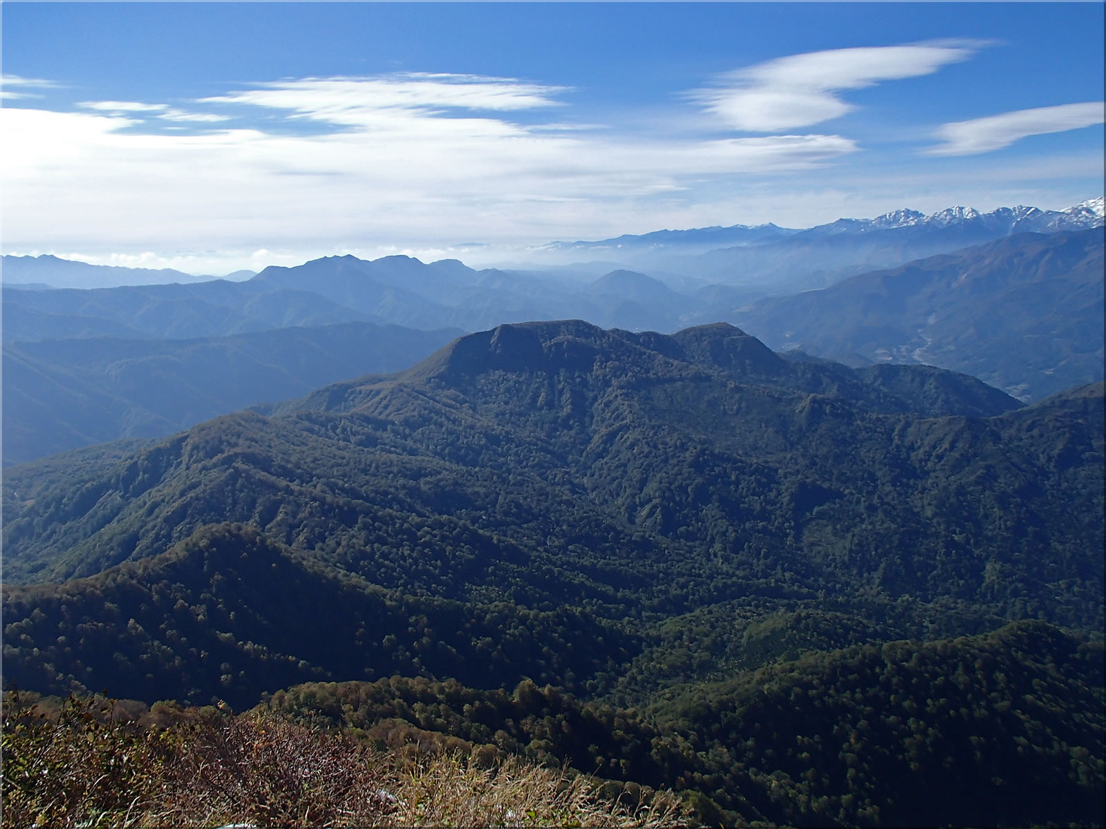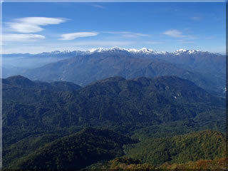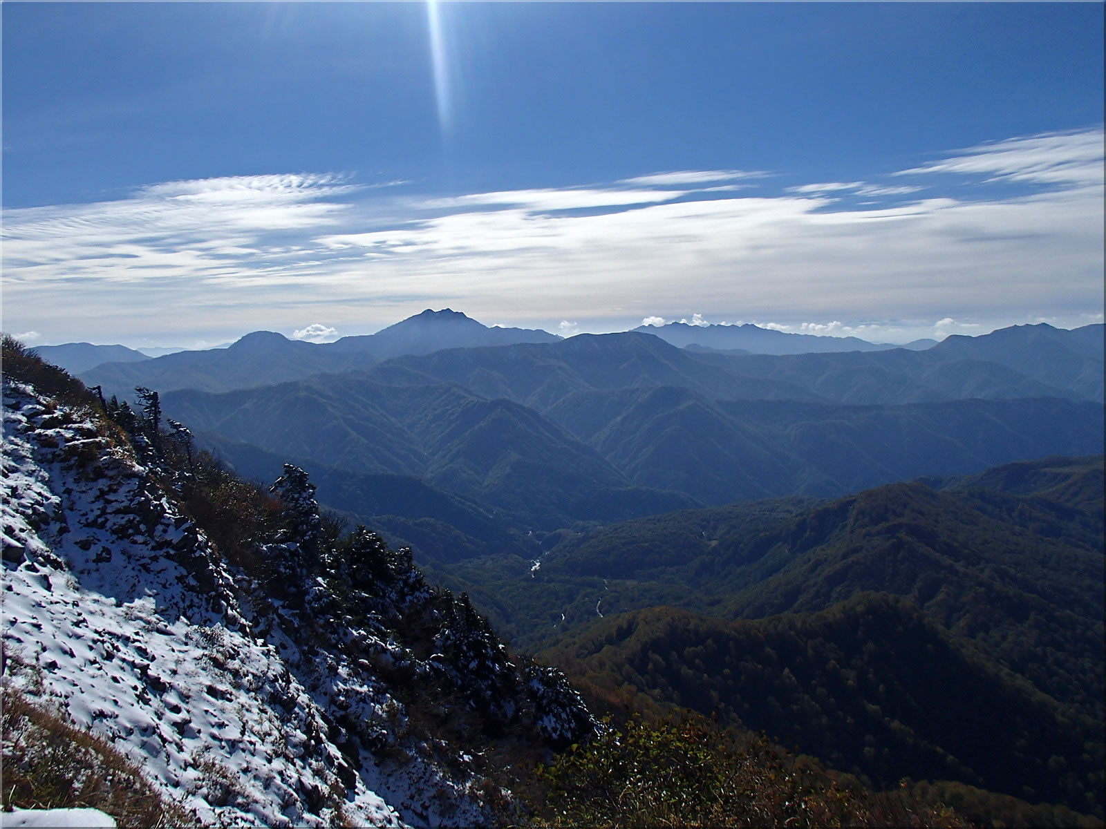 今日の展望です。まず北アルプス方面。上の方は随分と白くなりました。もう稜線は冬山ですね。